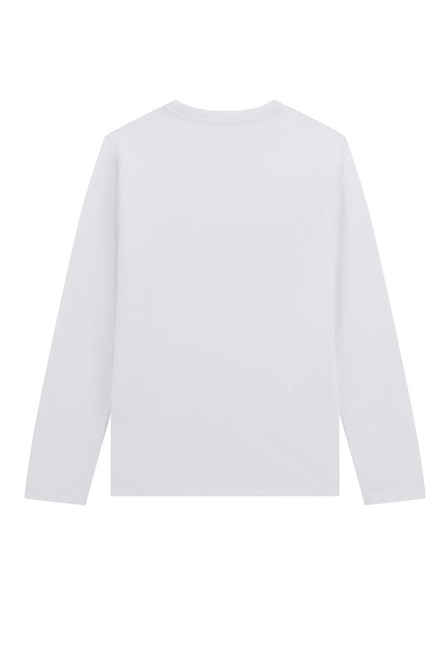 Эта белая футболка от Guess станет отличным дополнением к гардеробу вашего мальчика. Классический крой и длинные рукава делают её универсальной для любого времени года.