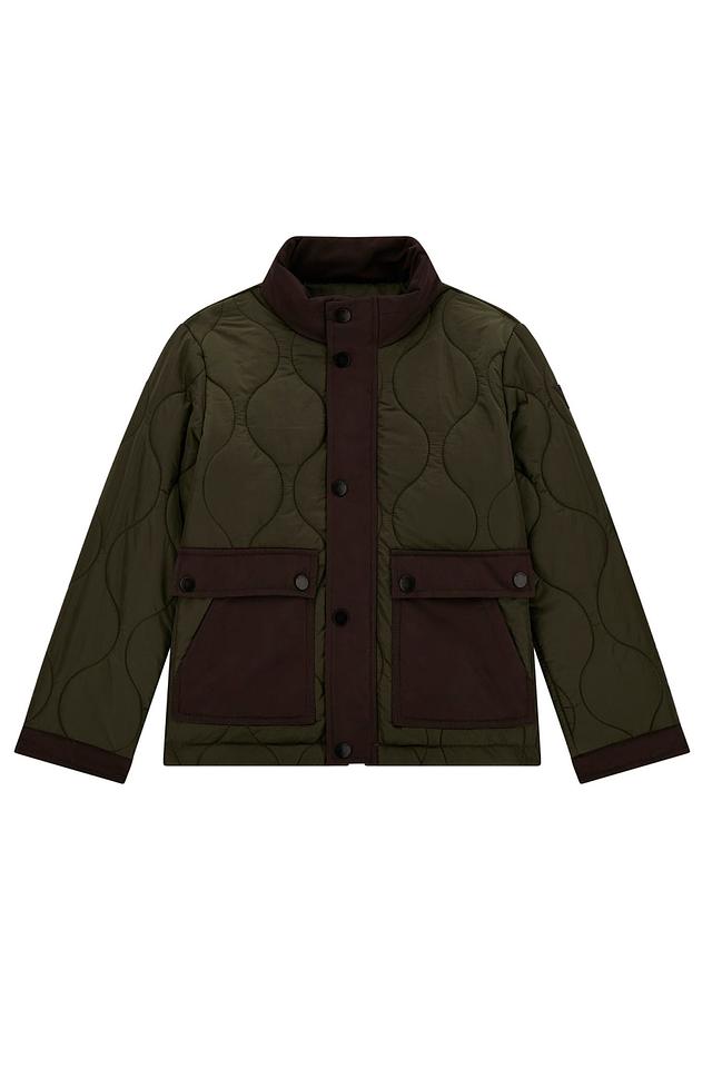Эта куртка от Guess станет отличным выбором для вашего мальчика. Она выполнена в актуальном оливковом цвете и имеет стеганую фактуру, которая придает ей современный вид.