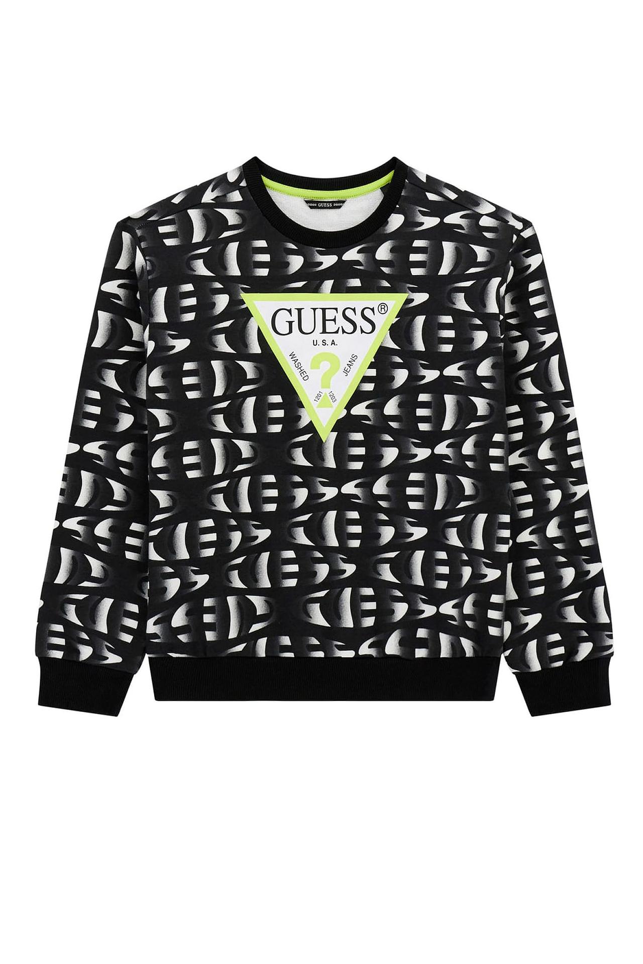 Джемпер Guess из 100% хлопка – идеальный выбор для стильных и активных детей. Модель выполнена в черном цвете с оригинальным принтом, который добавит яркости в повседневный образ вашего ребенка. Мягкий и дышащий материал обеспечит комфорт в течение всего дня, а классический крой гарантирует свободу движений.