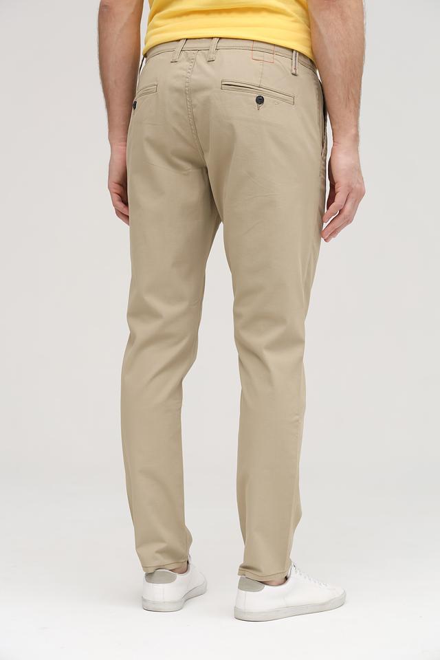 Мужские брюки чинос от бренда Hattric выполнены в бежевом цвете. Модель имеет классический крой с прямыми штанинами и стандартной посадкой. Брюки застегиваются на молнию и пуговицу, а также оснащены боковыми и задними карманами.