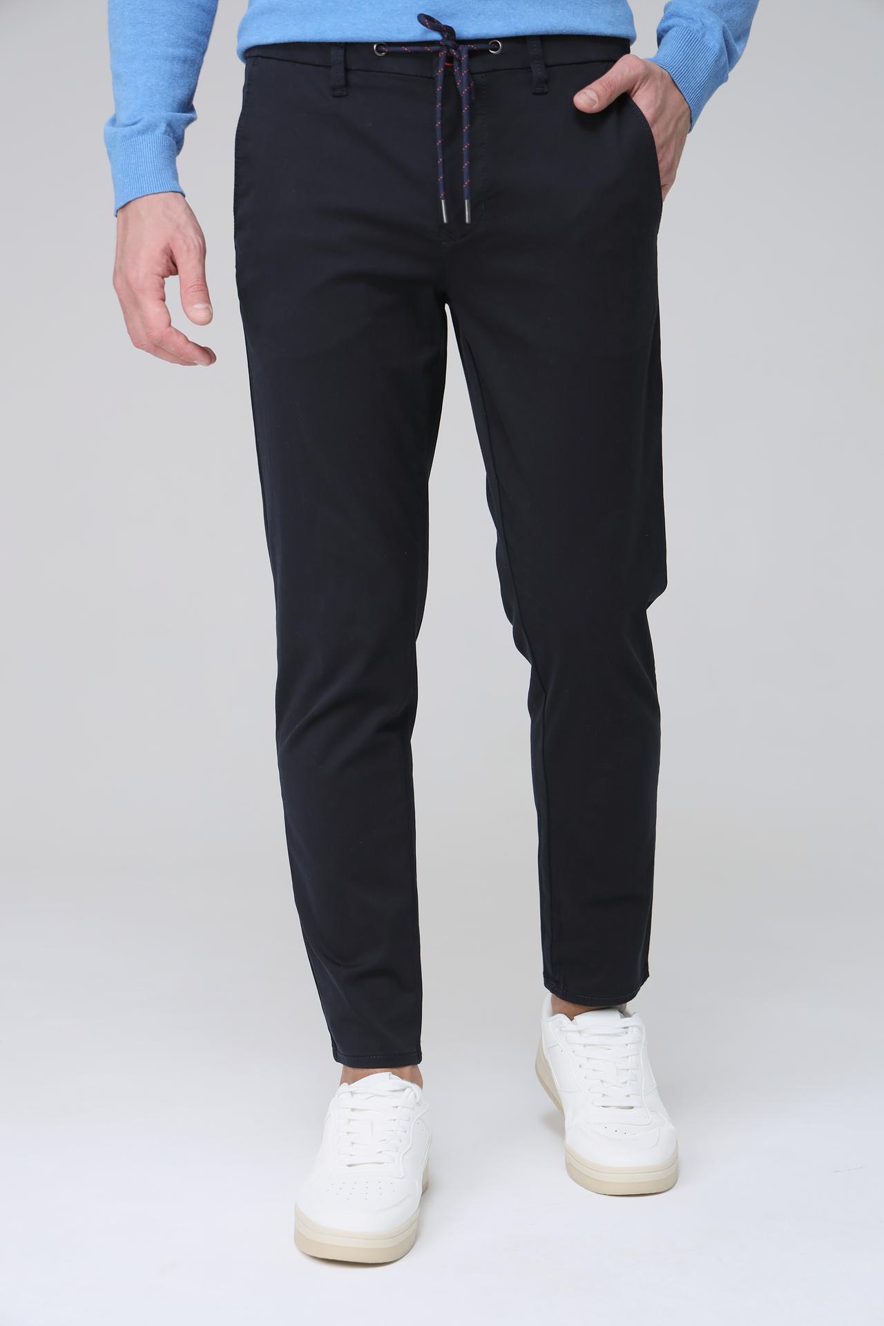 Брюки Hattric тёмно-синие с декоративным шнурком