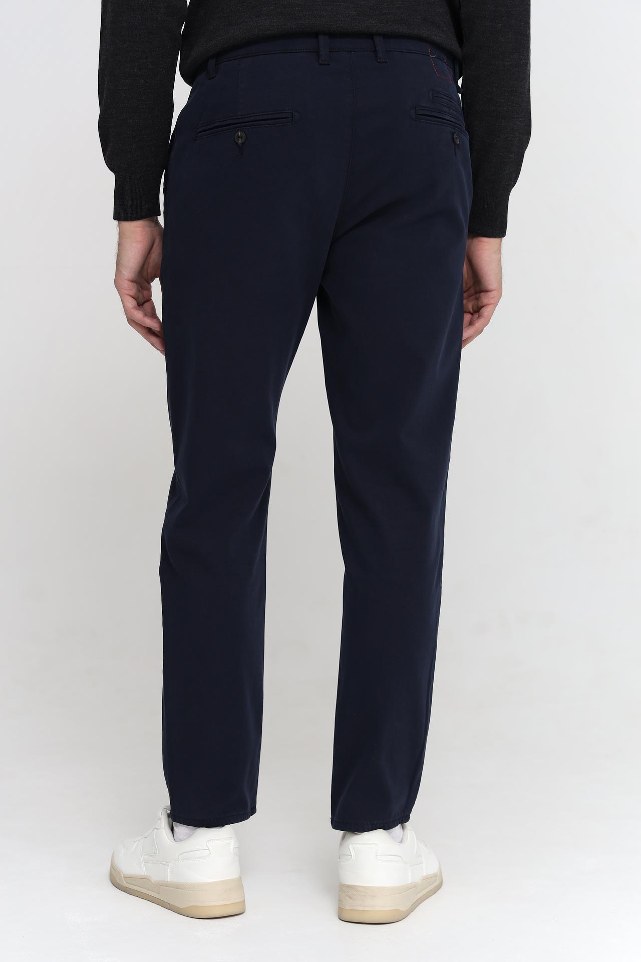 Брюки мужские, зауженные к низу, изготовлены из смесовой ткани на основе хлопка с небольшим добавлением эластана, благодаря чему хорошо держат форму и приятны в носке.