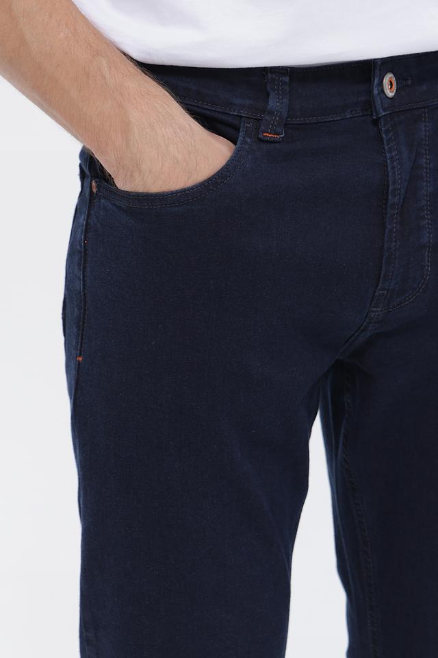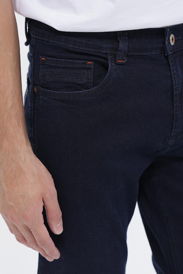 На передних карманах джинсов присутствуют декоративные швы оранжевого цвета, которые добавляют стильный акцент. Плотная ткань и классический крой делают эти джинсы отличным выбором для повседневной носки. Застежка на молнию и пуговицу обеспечивает надежную фиксацию.
