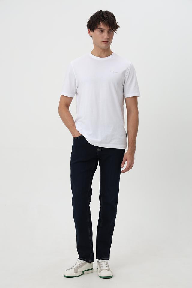 Джинсы имеют прямой крой, обеспечивающий свободу движений и комфортную посадку. Классическая средняя посадка подчеркивает достоинства фигуры. Модель оснащена пятью карманами, включая два передних, два задних и один карман для мелочи.