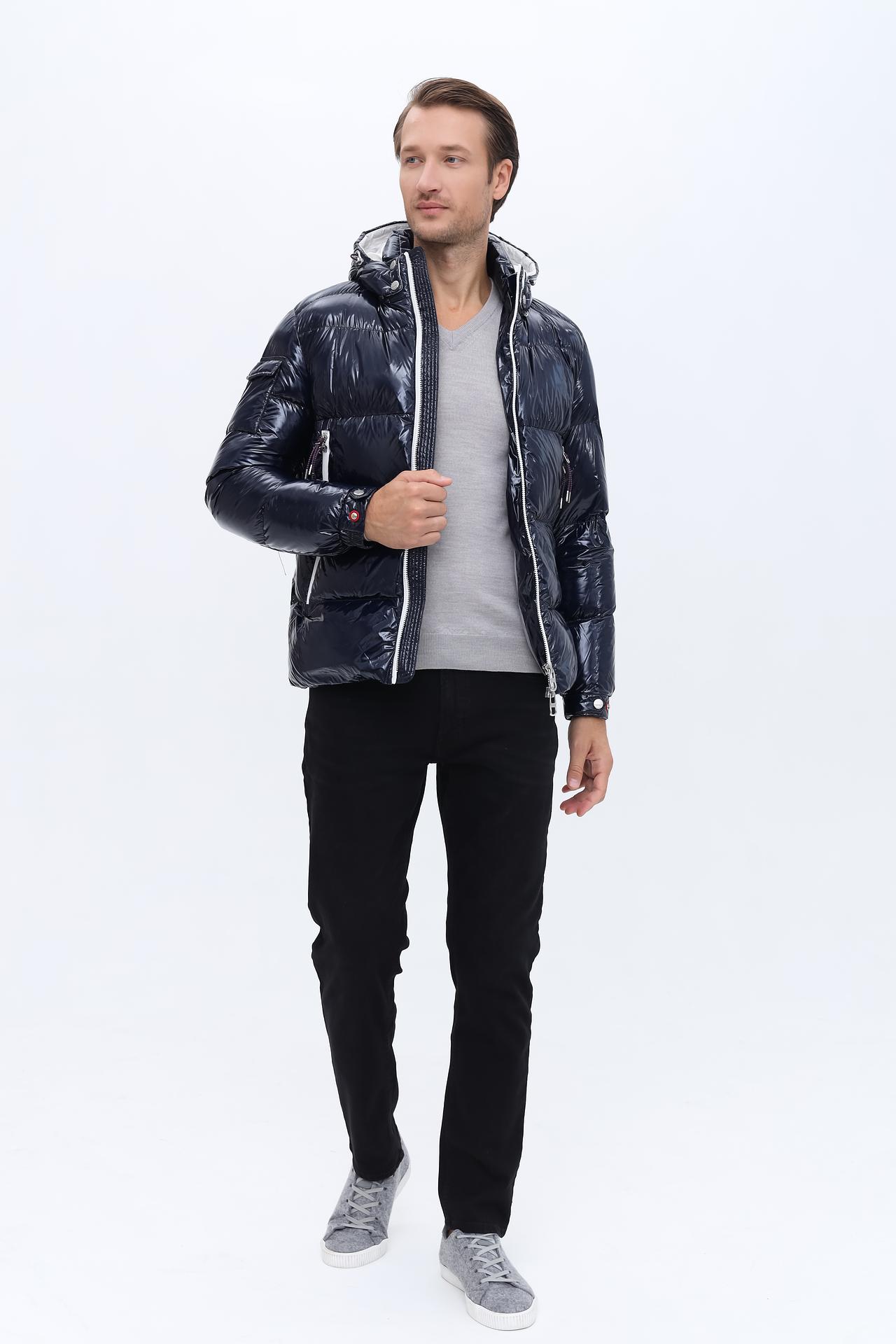 Куртка Hechter глянцевая темно-синяя с белыми молниями и капюшоном