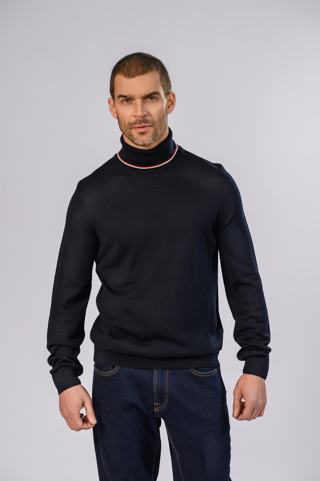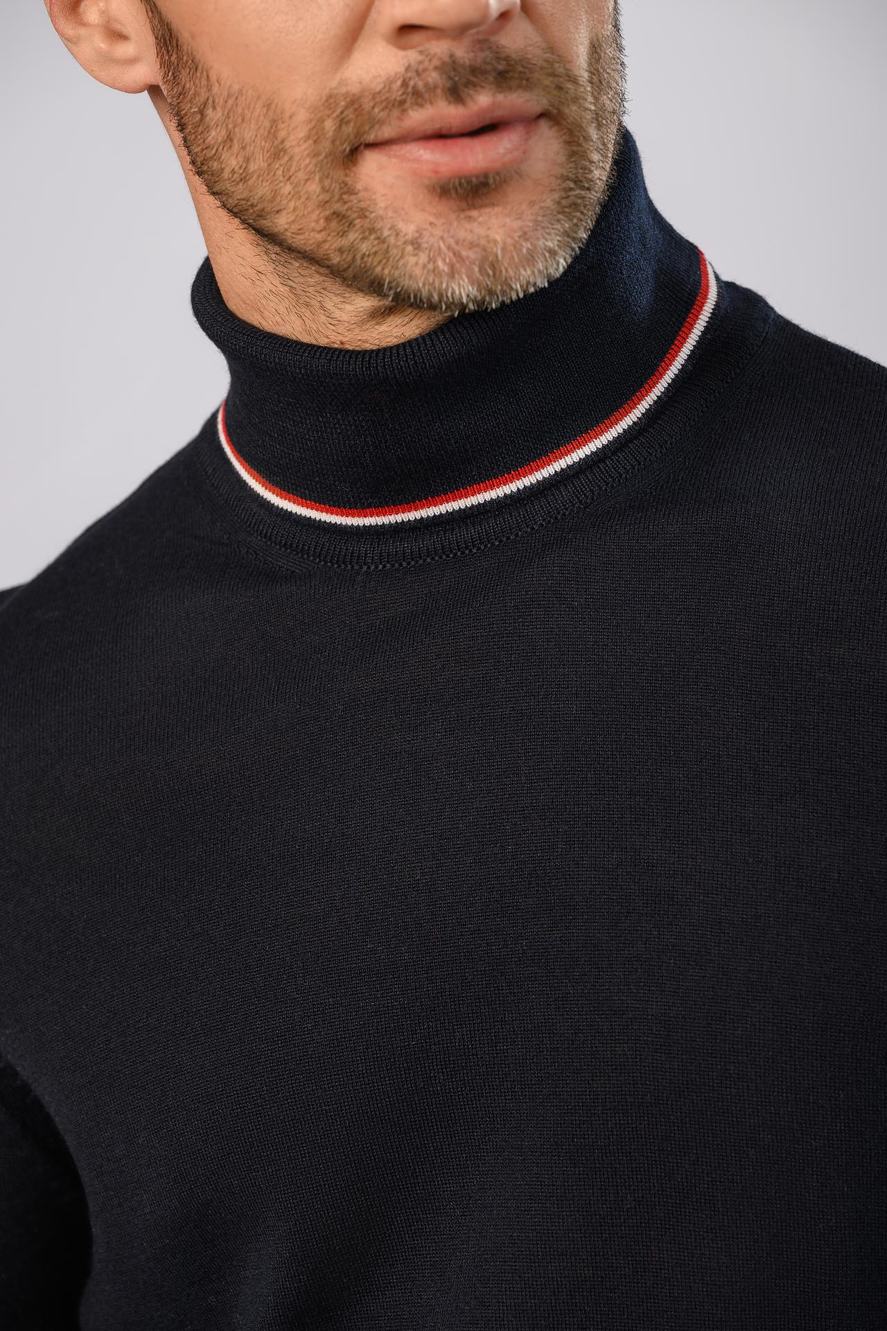 - Дизайн: Классический крой с высоким воротником-гольф. Контрастные полоски (белая и красная) на воротнике добавляют изысканности и делают водолазку более выразительной.