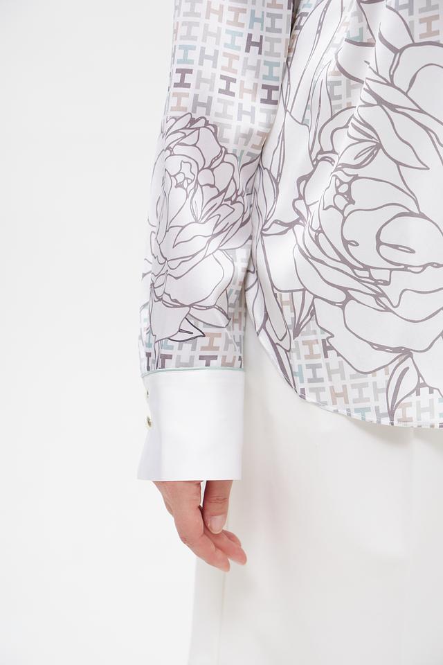 Блузка Herzens Angelegenheit светло-зелёного цвета с оригинальным цветочным принтом. Изготовлена из шёлка с добавлением эластана для комфорта и лучшей посадки. Состав: шелк 95%, эластан 5%