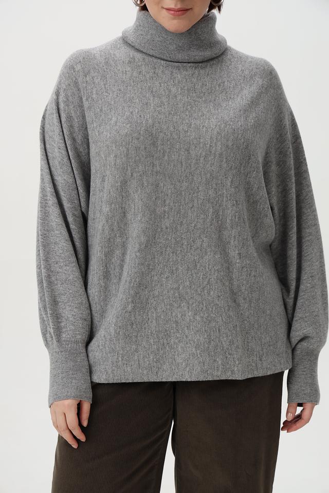 Серый пуловер Herzens Angelegenheit с высоким горлом — комфортная и стильная модель из мягкой шерсти с кашемиром. Свободный крой и объёмные рукава обеспечивают удобную посадку. Состав: шерсть 70%, кашемир 30%