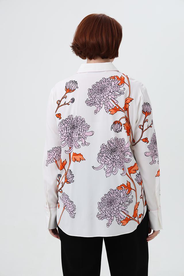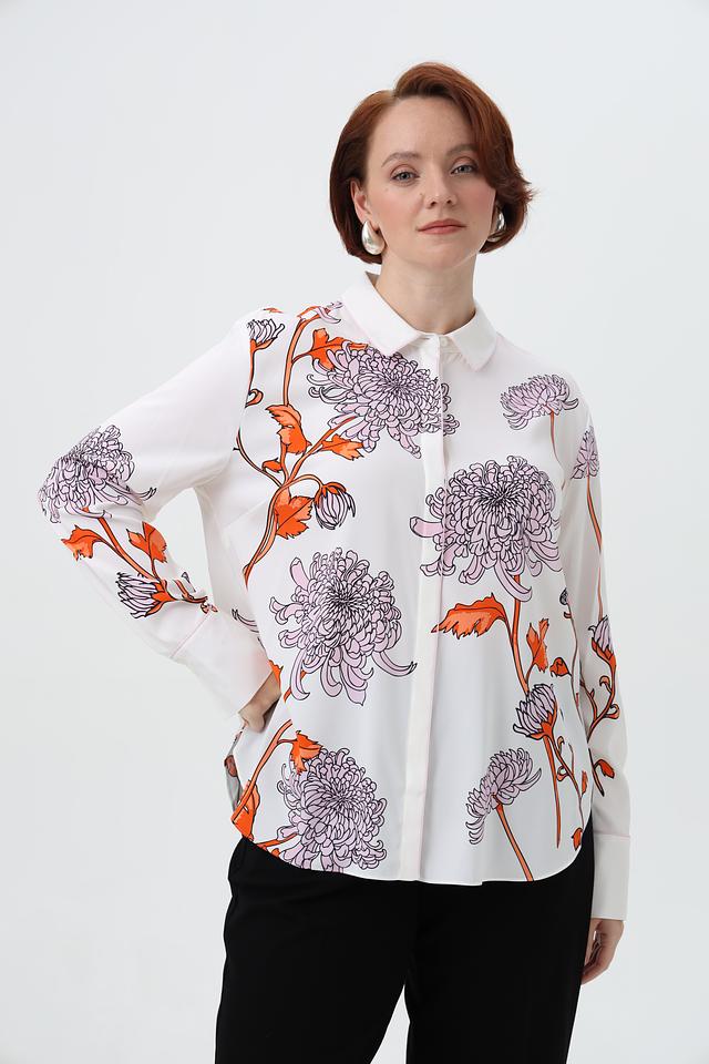 Белая блузка Herzens Angelegenheit с ярким цветочным принтом, выполненная из шелка с добавлением эластана. Модель с длинными рукавами и классическим воротником станет стильным дополнением к вашему гардеробу. Состав: шелк 95%, эластан 5%