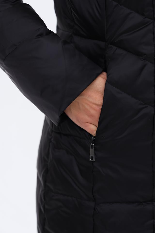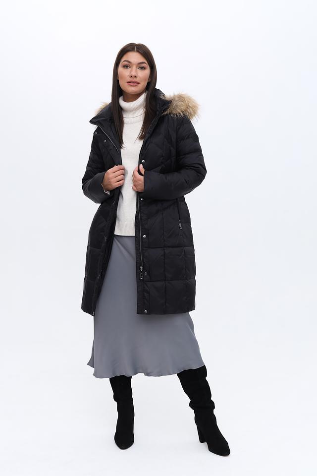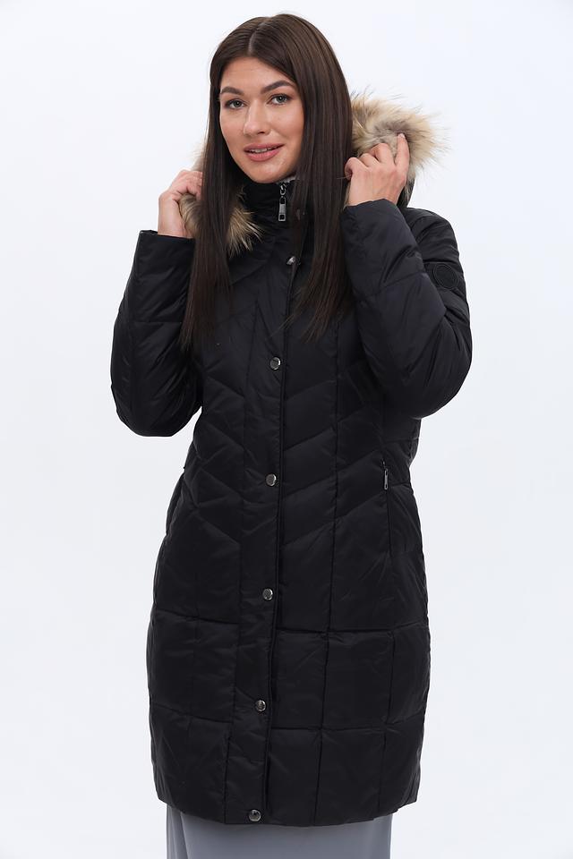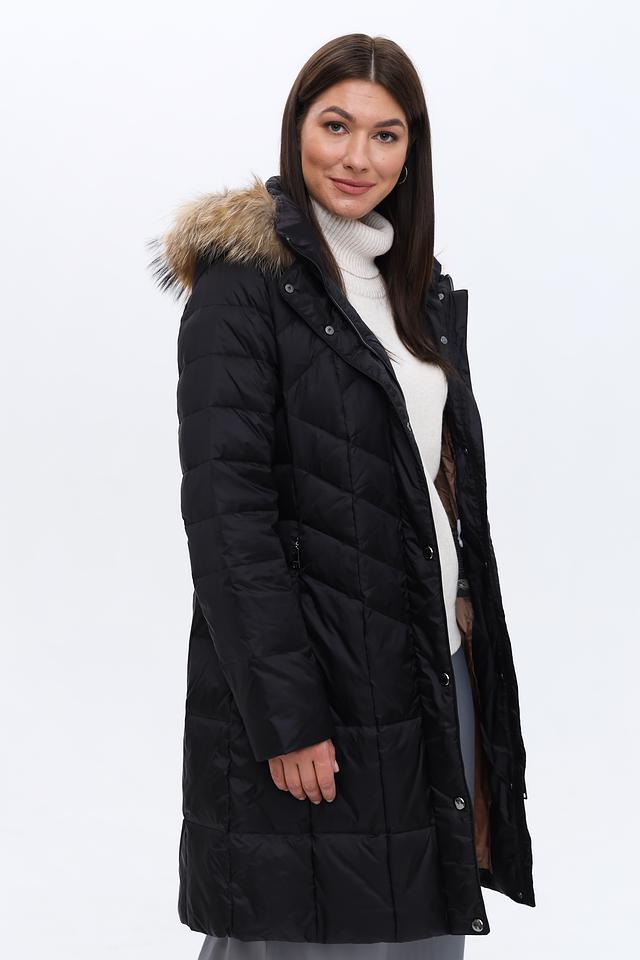 Пальто имеет стеганую фактуру, которая придает ему современный вид и обеспечивает дополнительную теплоизоляцию. Капюшон дополнен съёмной меховой отделкой, которая защитит от ветра и снега. Застежка – молния и кнопки, что обеспечивает удобство и надежность.