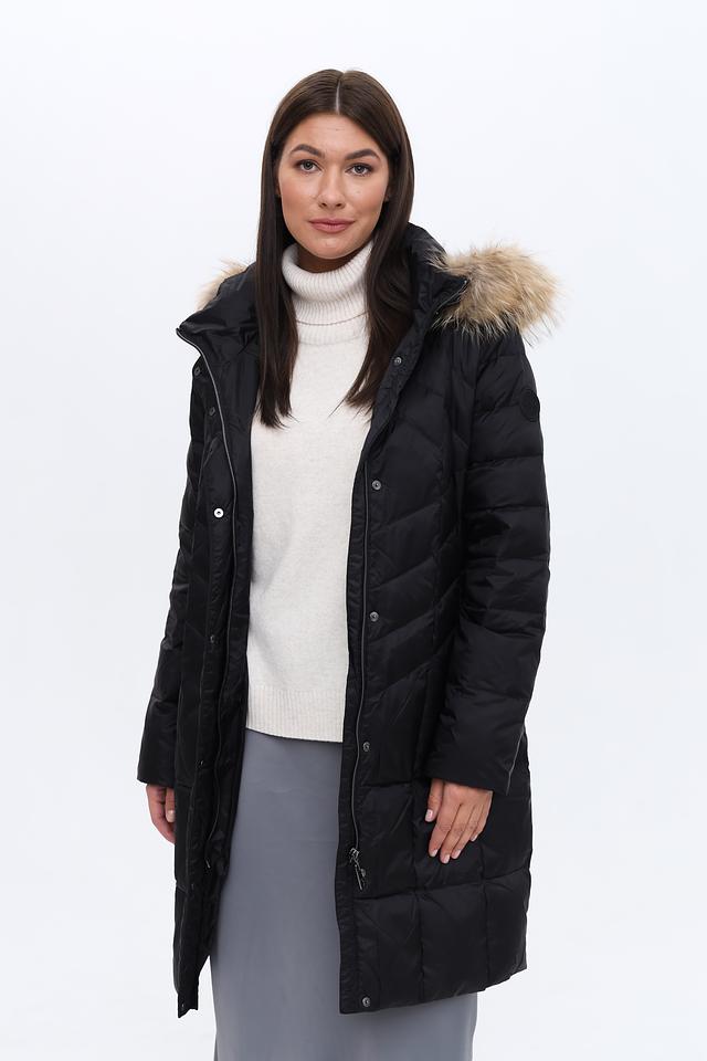 Чёрное стеганое пальто Heyer – это стильная и практичная верхняя одежда для холодной погоды. Модель с капюшоном и меховой отделкой обеспечит комфорт и защиту от ветра и снега. Состав: полиамид 100%