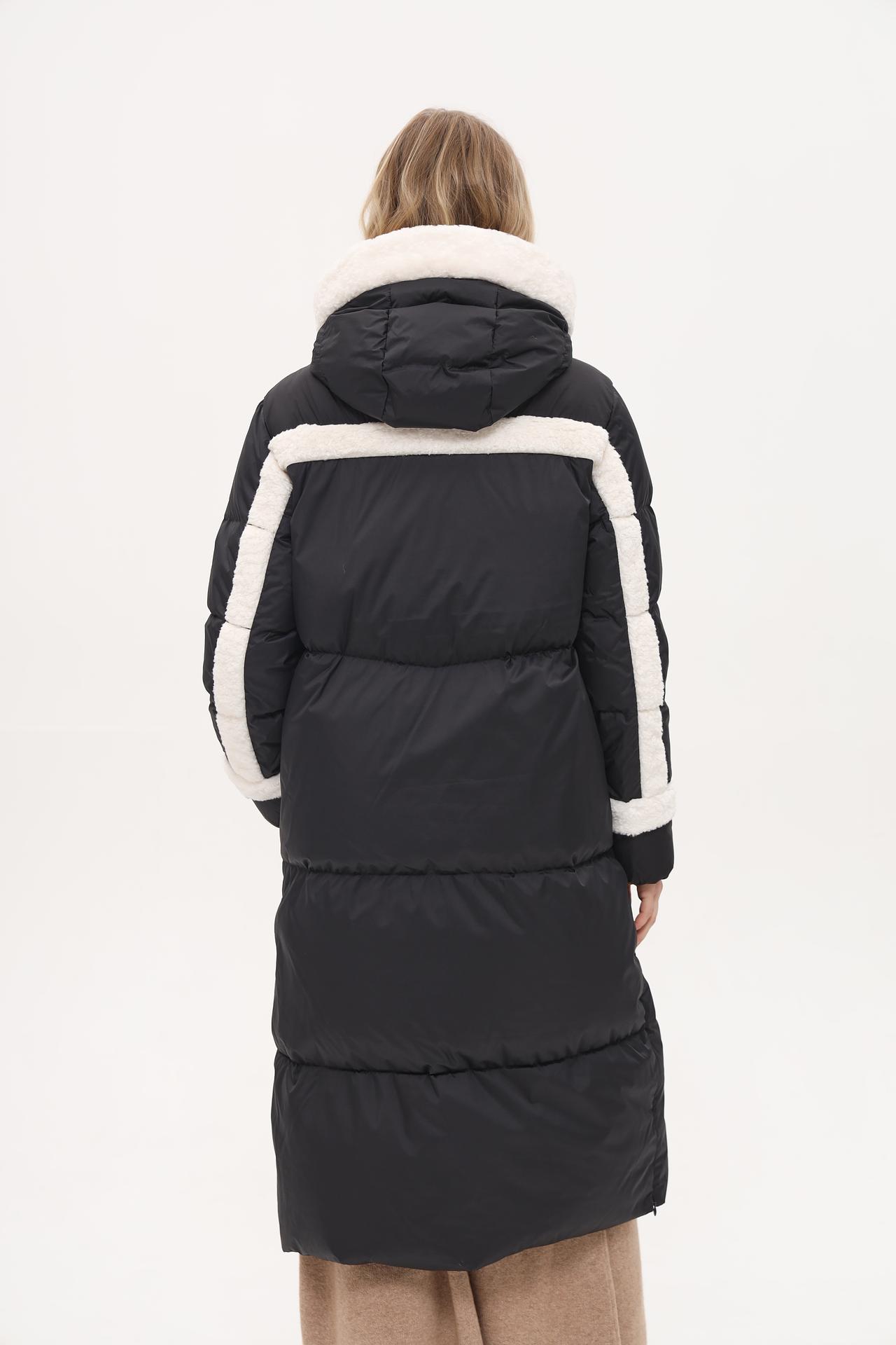 - Дизайн: Современный стеганый дизайн и отделка из искусственного меха на капюшоне и манжетах придают пальто особый шик. Контрастные белые полосы на рукавах добавляют динамичности образу.