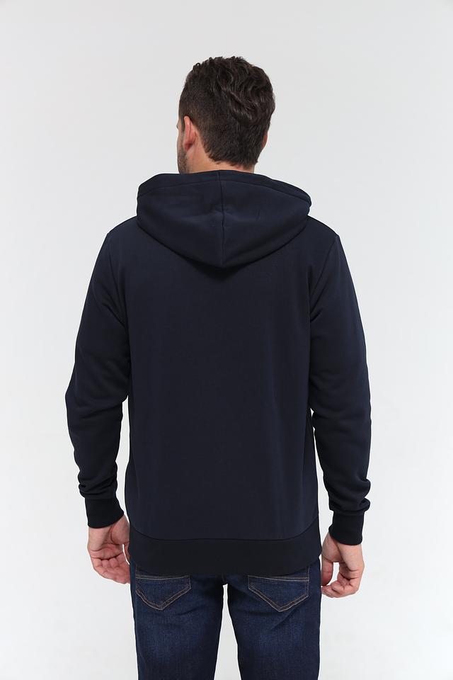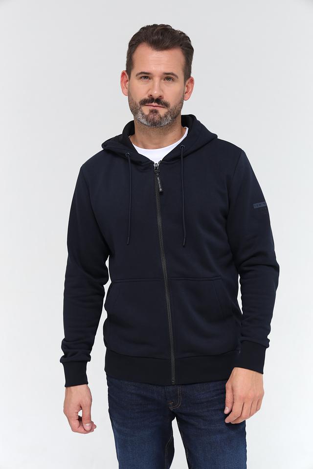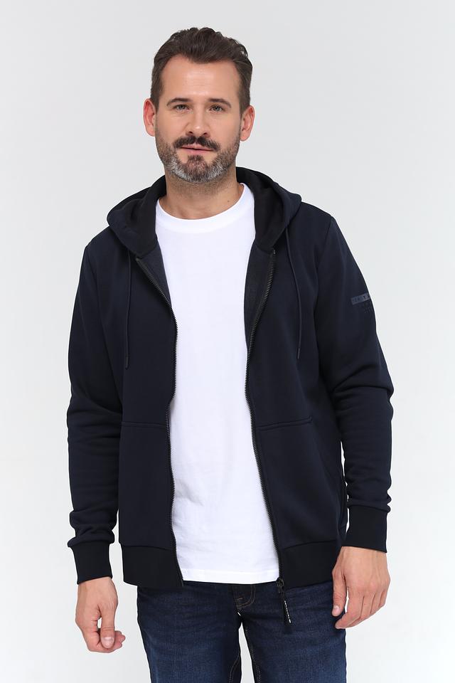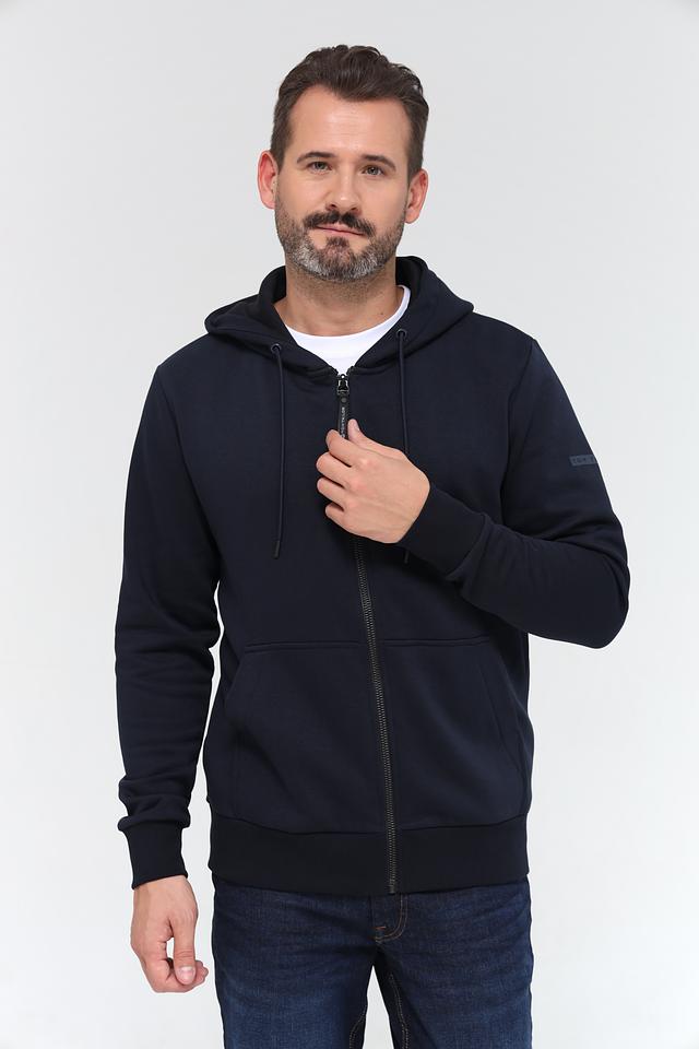 Мужской кардиган Tom Tailor тёмно-синего цвета – это удобная и стильная модель на молнии с капюшоном. Изготовлен из мягкого хлопка с добавлением полиэстера, обеспечивающего износостойкость. Идеально подходит для повседневной носки. Состав: хлопок 70%, полиэстер 30%