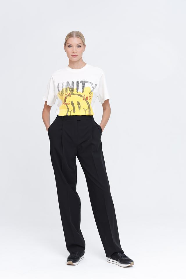 Представляем элегантные женские брюки от Hugo. Эта модель выполнена в классическом черном цвете, который легко сочетается с любым верхом.