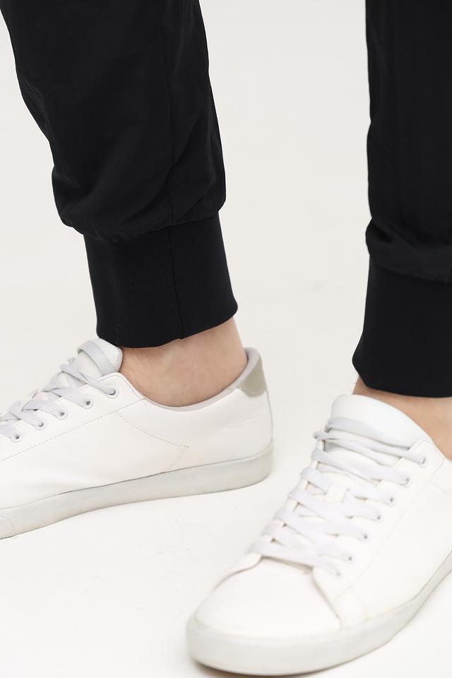 Дизайн брюк включает в себя два боковых кармана и эластичный пояс с регулирующим шнурком. Низ брюк дополнен манжетами, которые обеспечивают плотное прилегание к ноге. Данная модель идеально подойдёт для занятий спортом, активного отдыха или повседневной носки.