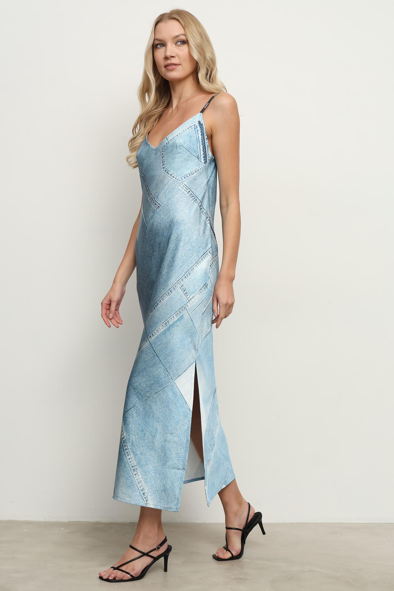 - Стильный принт. Оригинальный принт под деним придает платью современный и модный вид, позволяя выделиться из толпы.