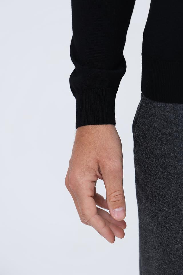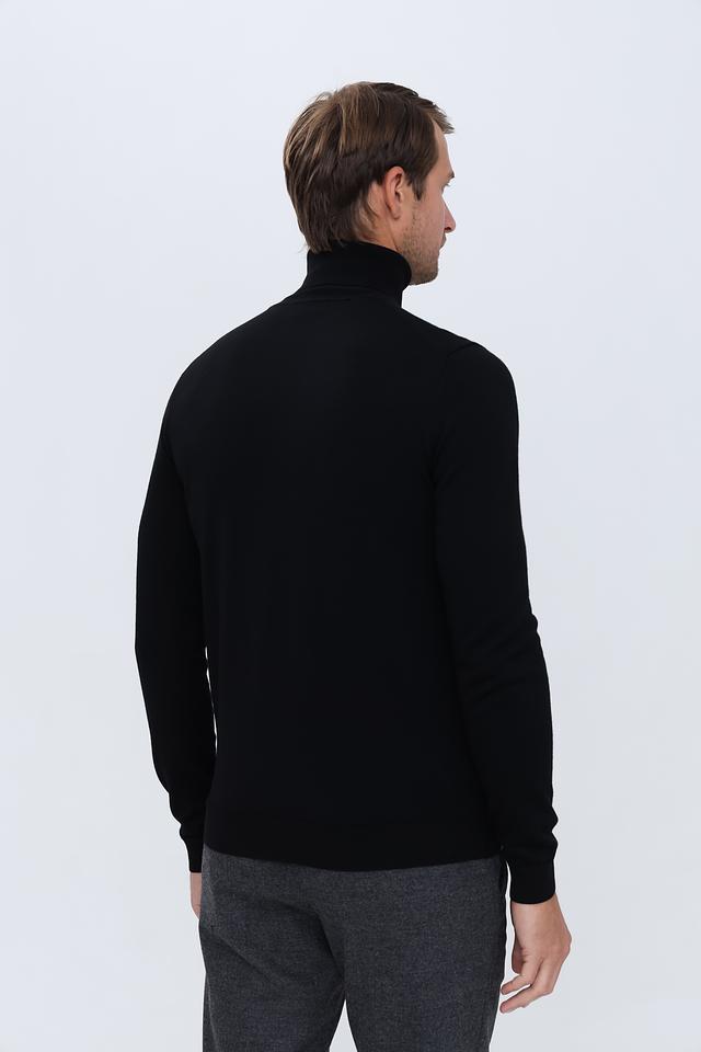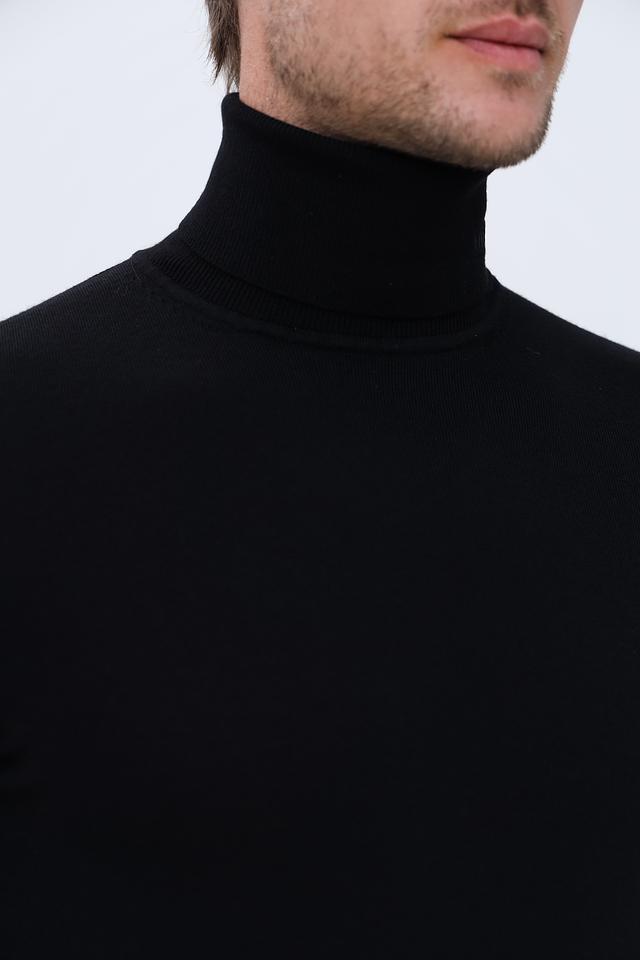 Классический чёрный цвет делает эту водолазку универсальным элементом гардероба, который легко сочетается с различными вещами – от деловых костюмов до повседневной одежды.