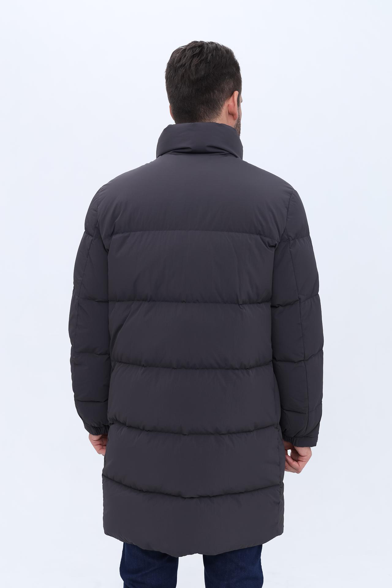- Дизайн: Классический крой пальто средней длины с высоким воротником создает элегантный силуэт. Минималистичный дизайн дополнен тисненым логотипом бренда на груди.