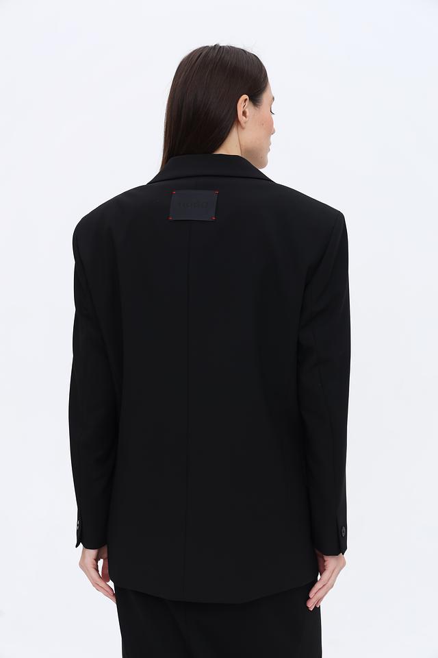 Этот жакет от Hugo – идеальный выбор для современной женщины, ценящей комфорт и стиль. Классический черный цвет делает его универсальным и легко сочетаемым с другими элементами гардероба.