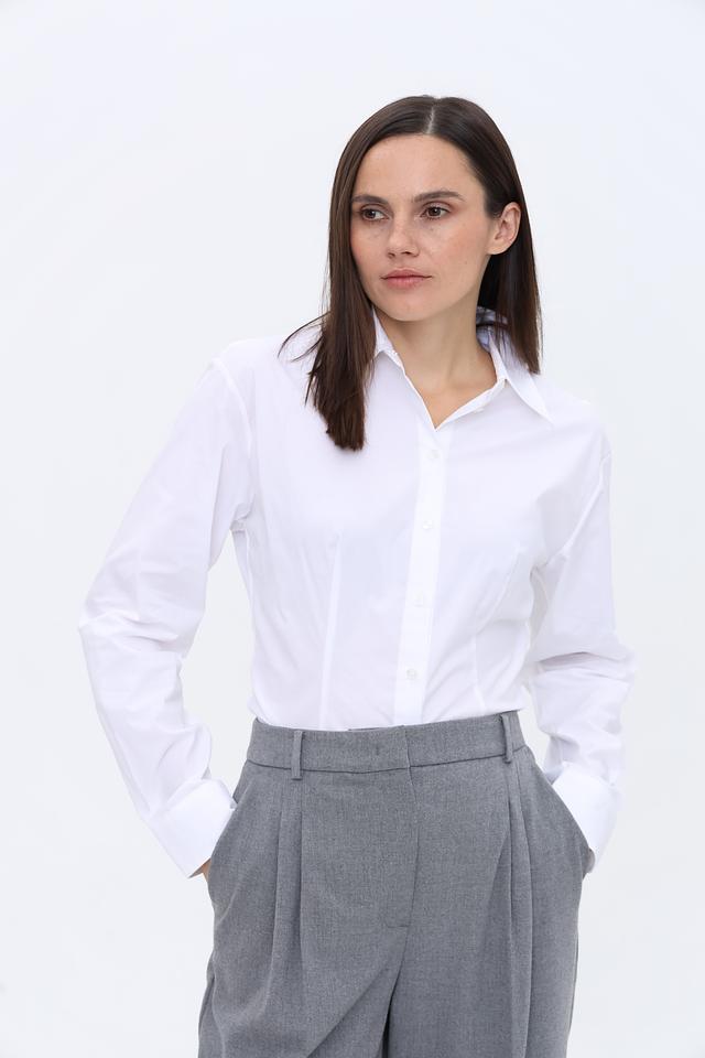 Состав: 97% хлопок, 3% эластан. Рубашка идеально подходит для работы, деловых встреч или повседневной носки. Она легко сочетается с брюками, юбками и джинсами, позволяя создавать стильные и элегантные комплекты.
