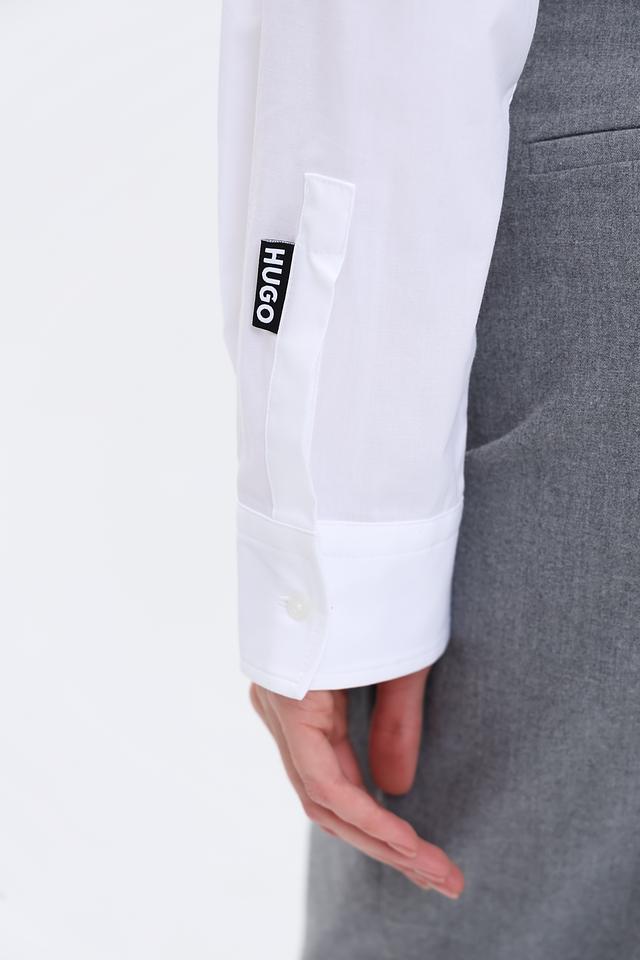 Эта элегантная рубашка от Hugo станет незаменимой частью вашего гардероба. Классический крой и безупречный белый цвет делают ее универсальной для создания различных образов.