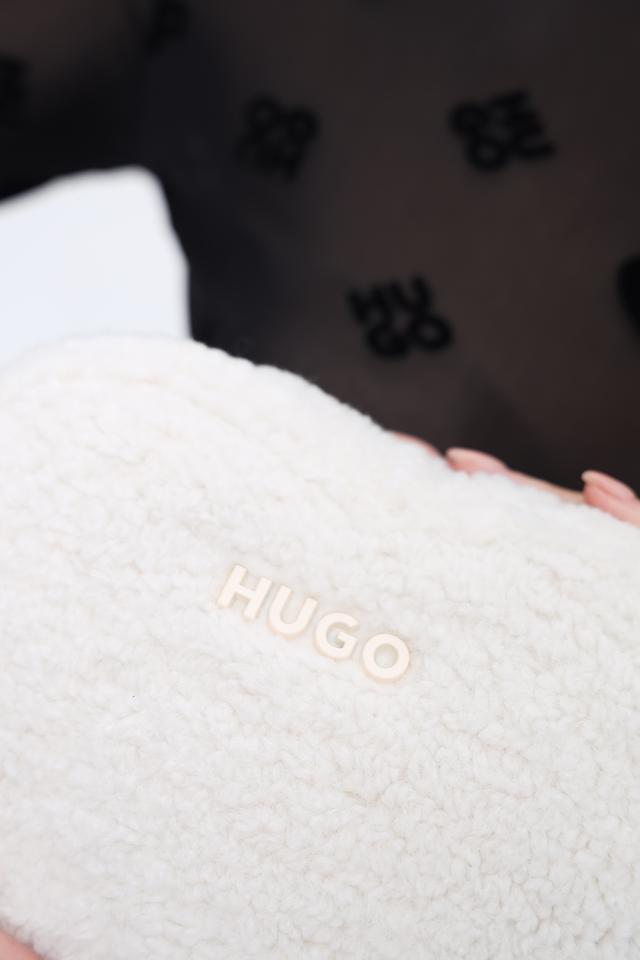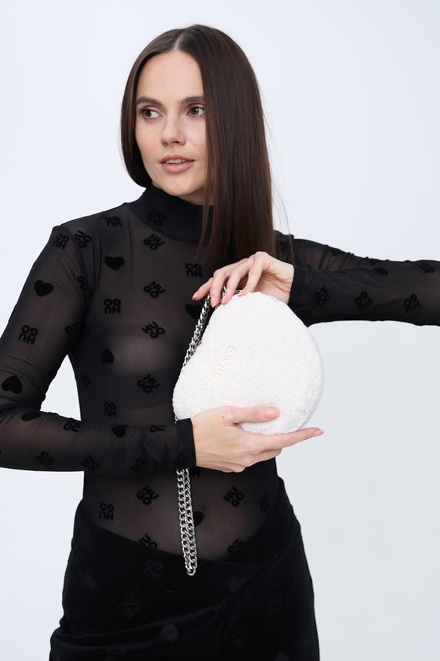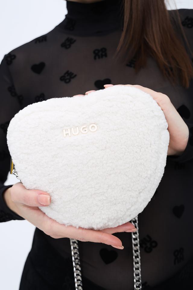 Белая сумка Hugo выполнена из мягкого полиэстера с текстурой "плюш". Аксессуар имеет удобную цепочку-ручку и компактный размер, идеально подходящий для особых случаев. Состав: полиэстер 100%