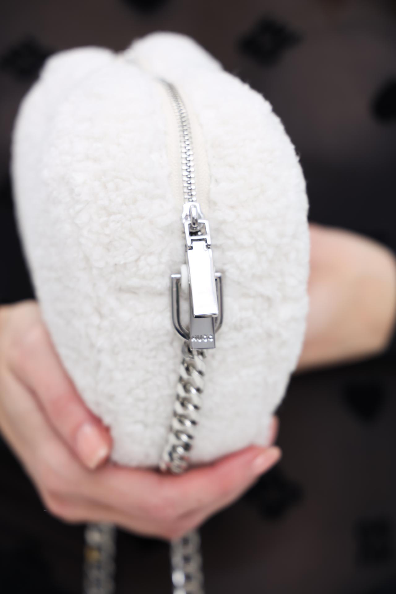 Изготовлена из 100% полиэстера, сумка Hugo отличается своей мягкостью и приятной на ощупь текстурой. Удобный размер и прочная цепочка позволяют носить ее как в руке, так и на плече, делая эту сумку идеальной для повседневного использования или особых случаев.