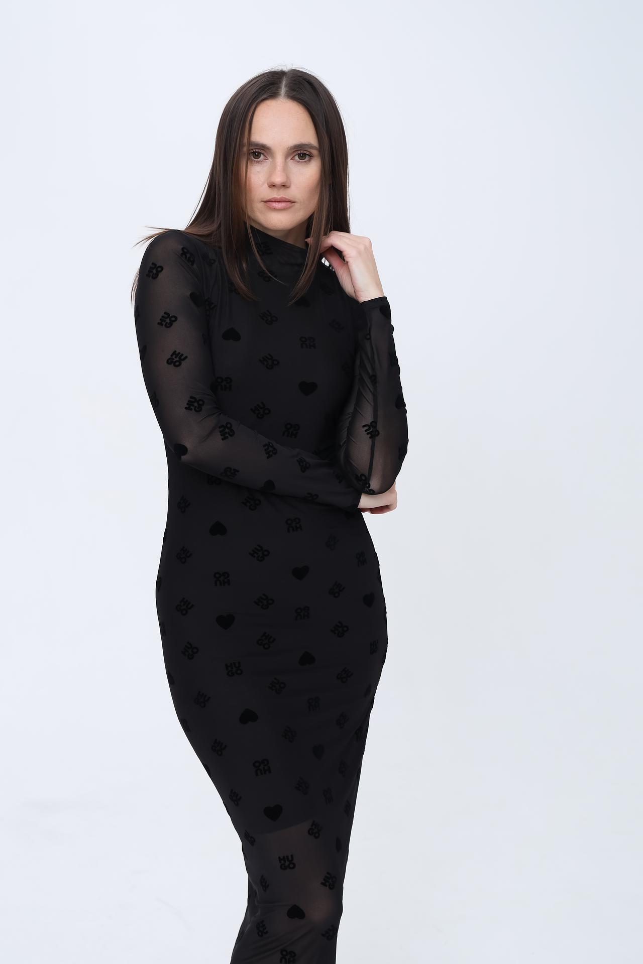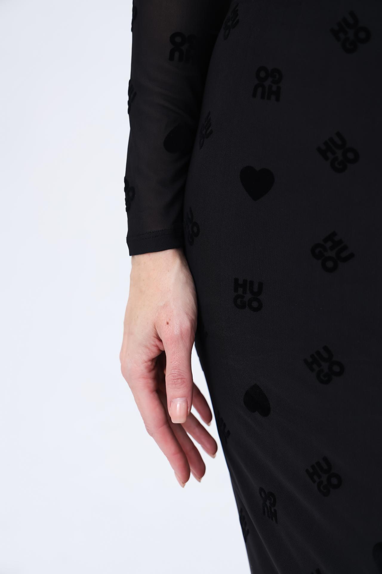 Элегантное чёрное платье миди от Hugo – это сочетание стиля и комфорта. Выполнено из качественной ткани с добавлением эластана, что обеспечивает идеальную посадку по фигуре и свободу движений. Идеальный выбор для создания утонченного образа.