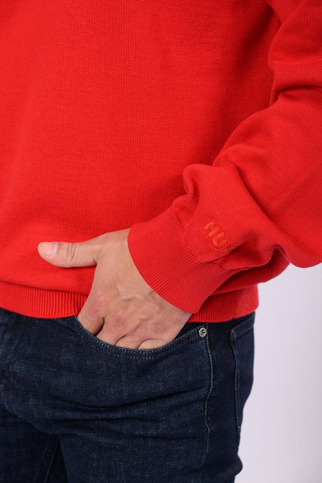 Этот мужской джемпер от Hugo выполнен из высококачественного хлопка, что гарантирует комфорт и воздухопроницаемость. Яркий красный цвет делает его заметной частью гардероба, подходящей для создания различных образов.