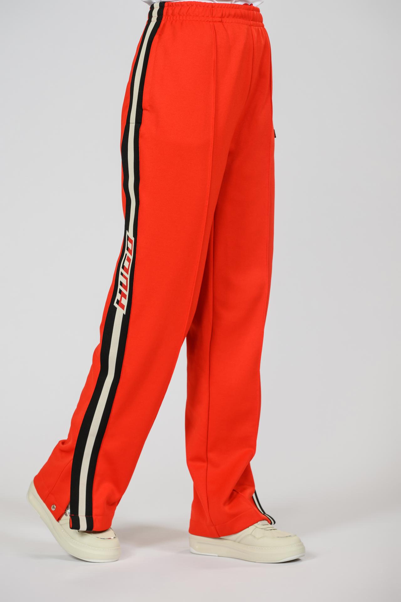 Оцените комфорт и стиль в этих спортивных брюках от Hugo. Идеальный выбор для активного отдыха и повседневной носки. Брюки выполнены из смесовой ткани (30% хлопок, 70% полиэстер), что обеспечивает отличную износостойкость и легкость в уходе. Яркий красный цвет и лампасы добавляют динамики вашему образу.