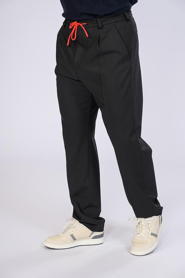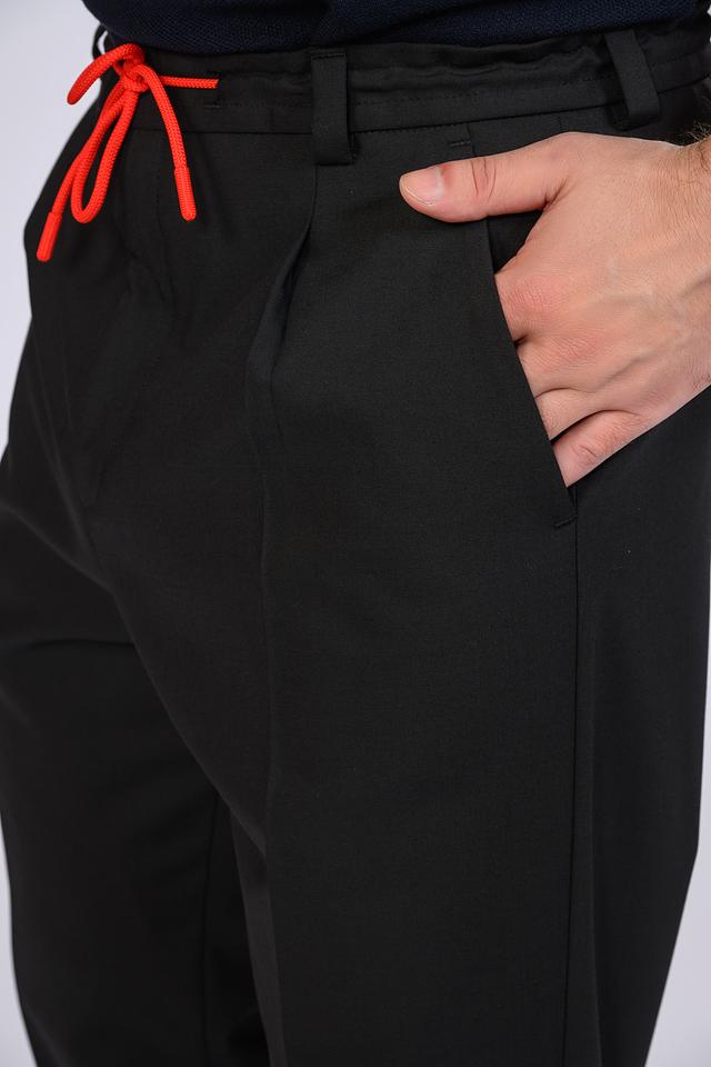 Дизайн брюк дополнен удобным эластичным поясом с контрастным красным шнурком для регулировки. Модель имеет стандартную посадку, прямой крой и боковые карманы. Задний карман накладной с декоративной отделкой. Эти брюки станут отличным выбором для тех, кто ценит стиль, комфорт и качество.