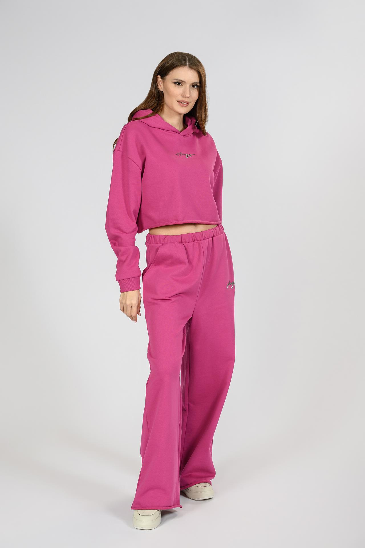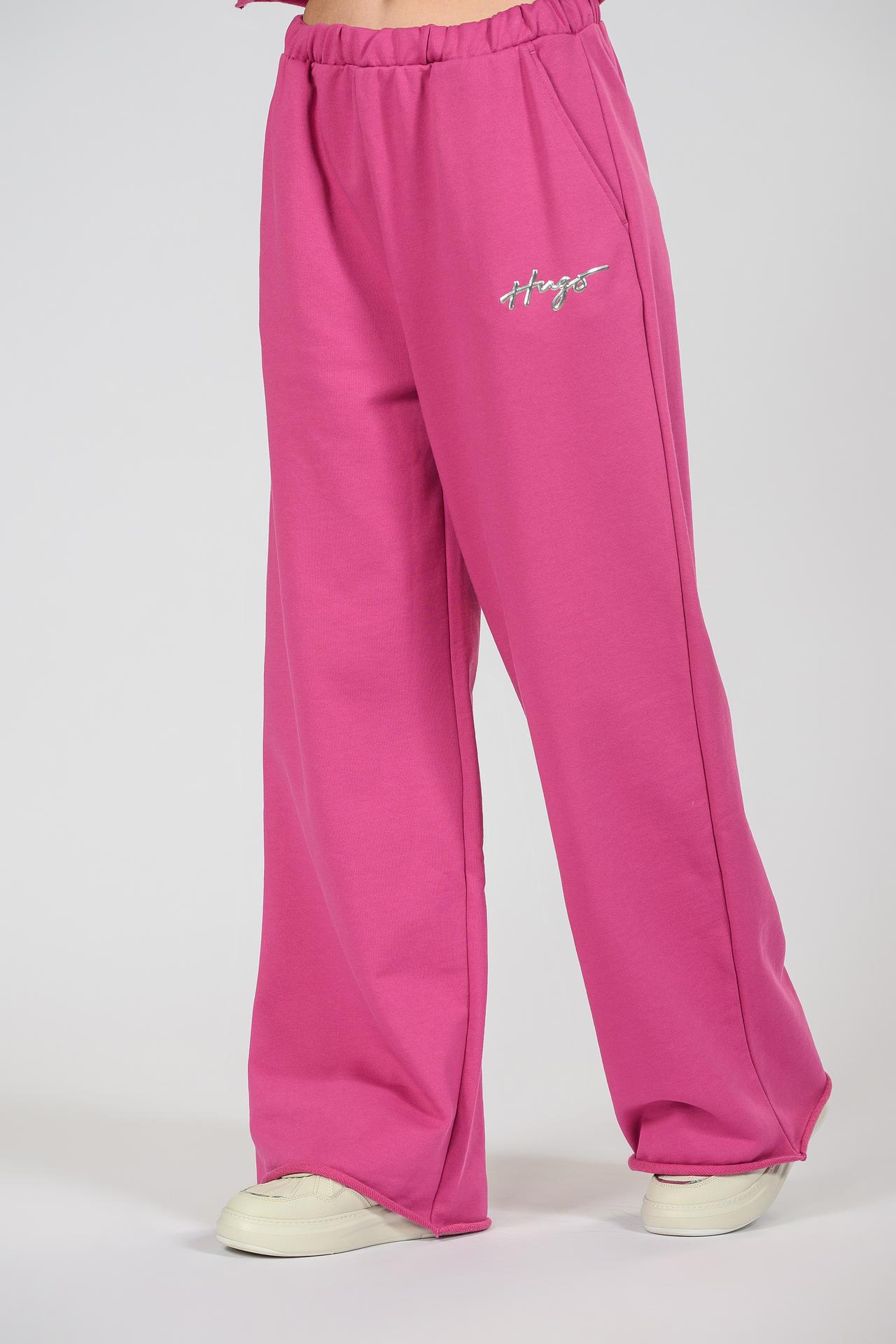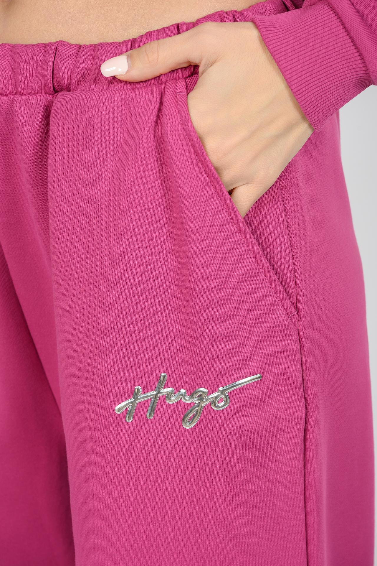 Спортивные брюки Hugo широкие фуксия с вышивкой