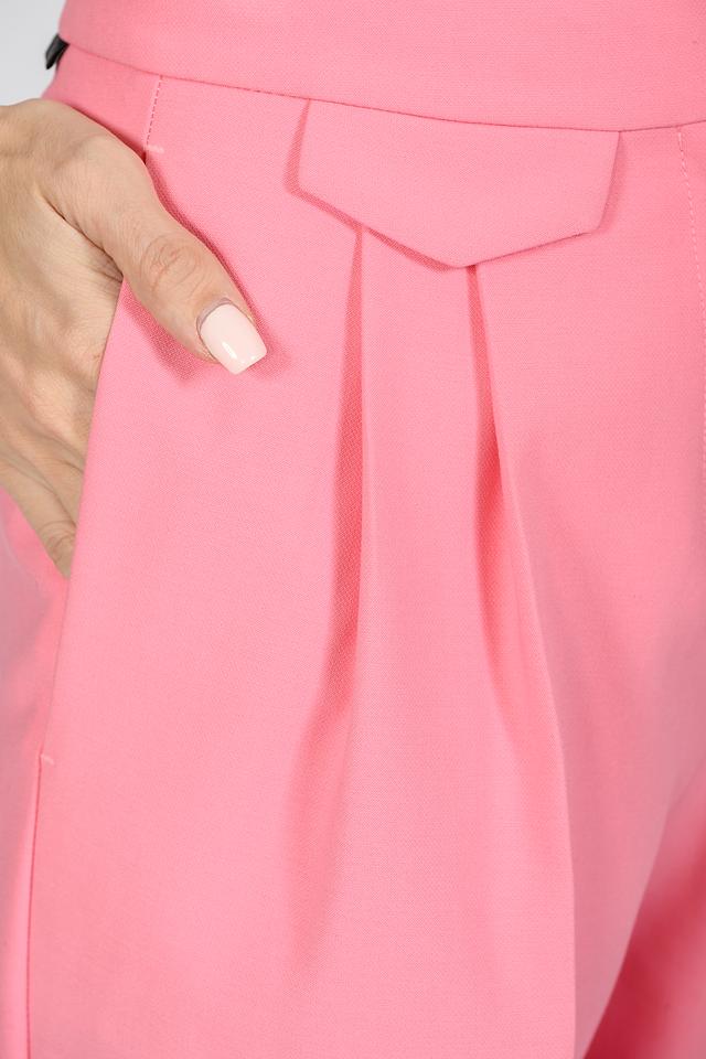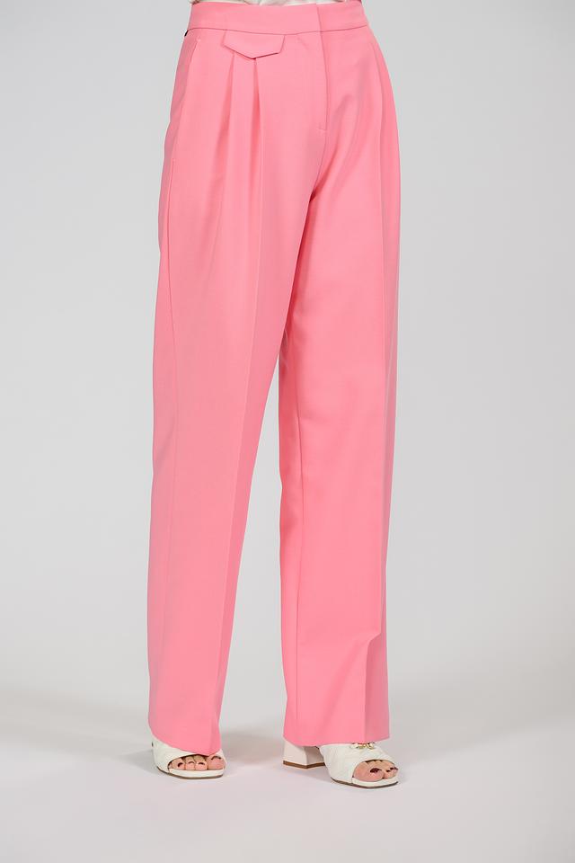 Брюки имеют широкий крой, который обеспечивает свободу движений и комфорт в течение всего дня. Высокая посадка визуально удлиняет ноги и подчеркивает талию. Классический дизайн дополнен аккуратными складками спереди, придающими брюкам элегантный вид.