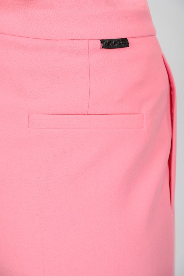 Женские брюки Hugo нежно-розового цвета в стиле палаццо — элегантный выбор для создания стильного образа. Модель отличается широким кроем и высокой посадкой, что обеспечивает комфорт и подчеркивает достоинства фигуры. Состав: полиэстер 64%, вискоза 31%, эластан 5%