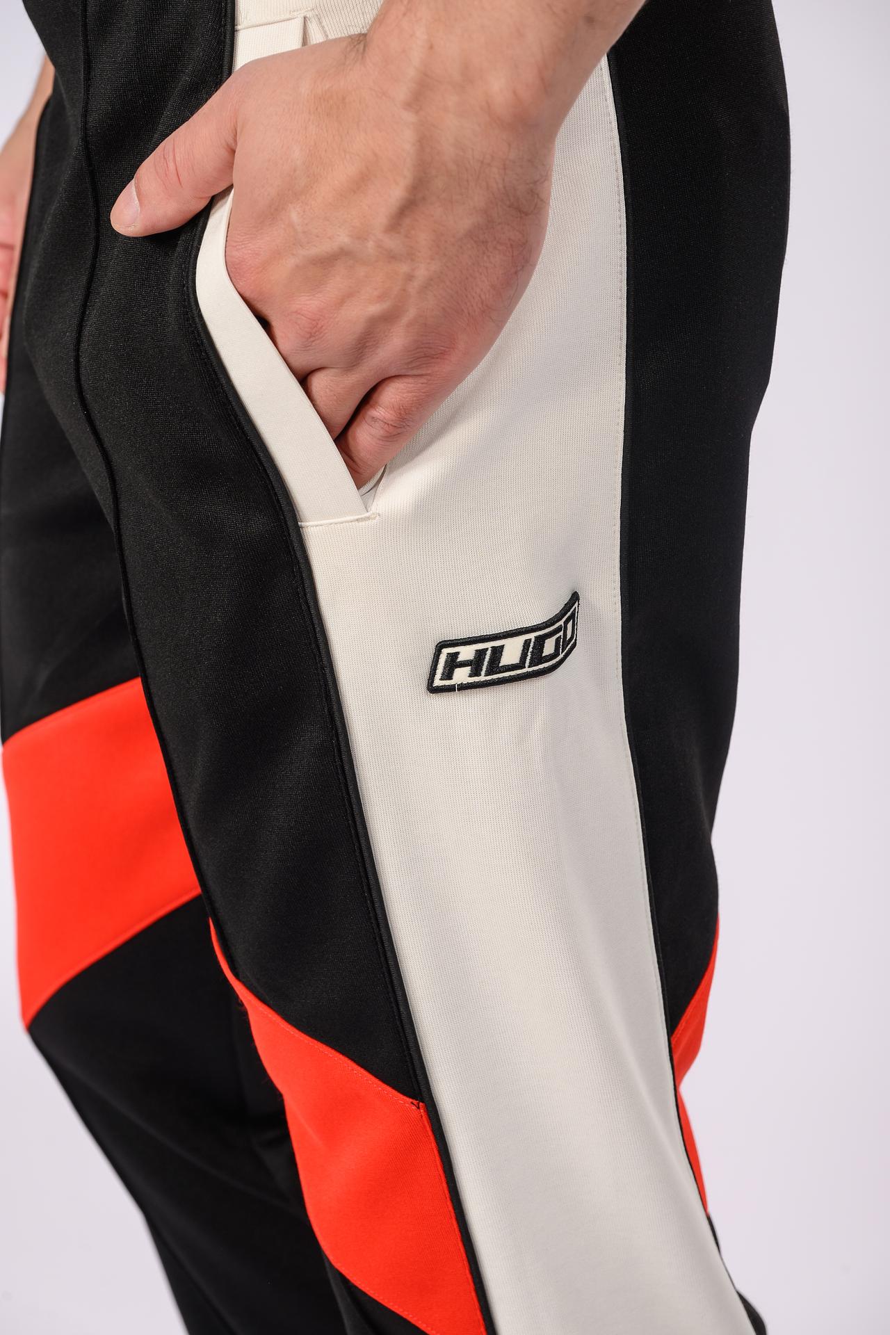 Стильные спортивные брюки Hugo – идеальный выбор для активного образа жизни и комфортного повседневного ношения. Сочетание классического черного цвета с яркими оранжевыми вставками и контрастными бежевыми полосами создает динамичный и современный дизайн. Брюки отлично подойдут как для тренировок, так и для создания модных уличных образов.