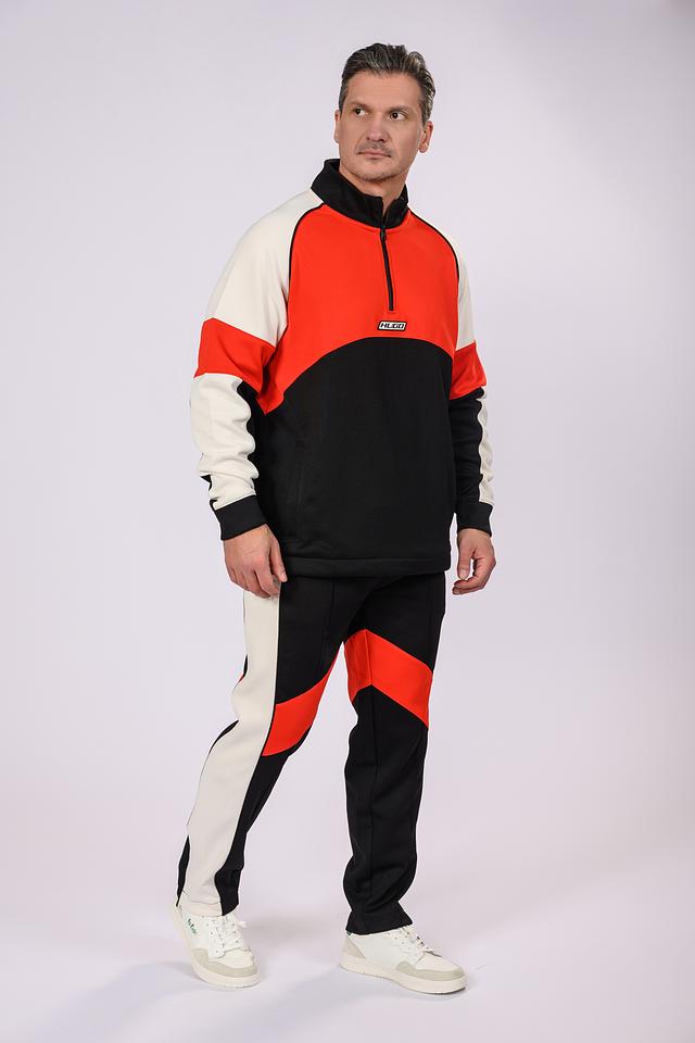 Мужской пуловер Hugo яркого дизайна, сочетающий в себе чёрный, красный, белый и бежевый цвета. Модель с молнией и логотипом бренда на груди станет стильным дополнением к вашему гардеробу. Состав: полиэстер 70%, хлопок 30%
