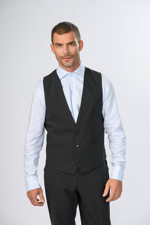 Мужской классический костюм Hugo чёрного цвета, выполнен из сочетания шерсти, полиэстера и эластана. Идеальный выбор для создания элегантного и стильного образа. Состав: полиэстер 52%, шерсть 43%, эластан 5%