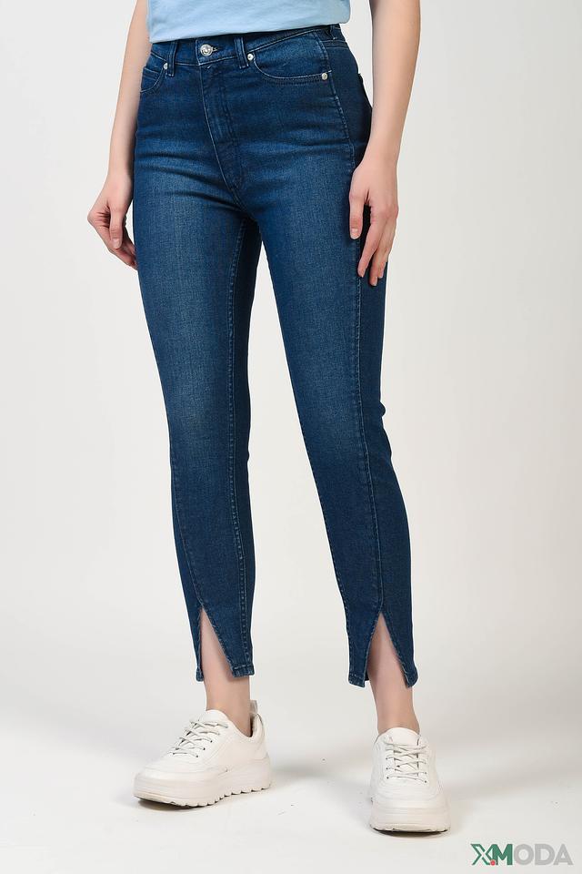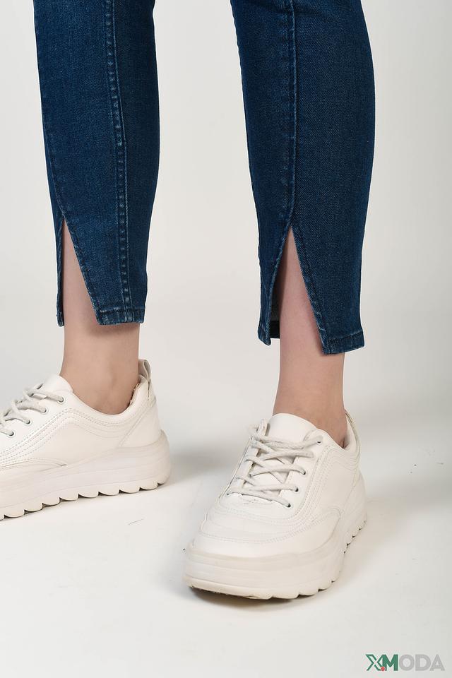 Джинсы имеют прямой крой, который подчеркивает фигуру, но при этом обеспечивает комфорт при носке. Оригинальным элементом дизайна являются разрезы по бокам штанин, добавляющие образу современный акцент.