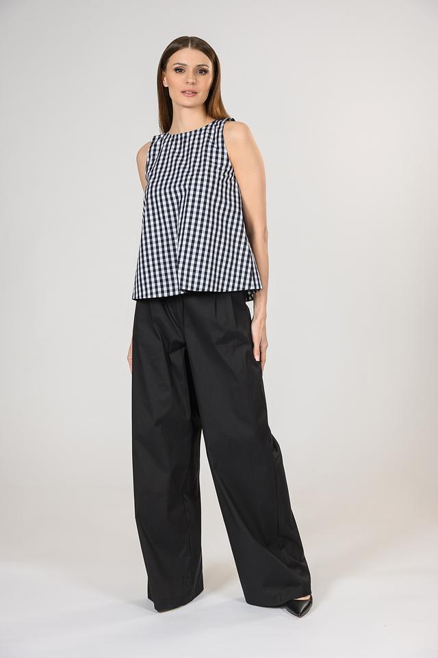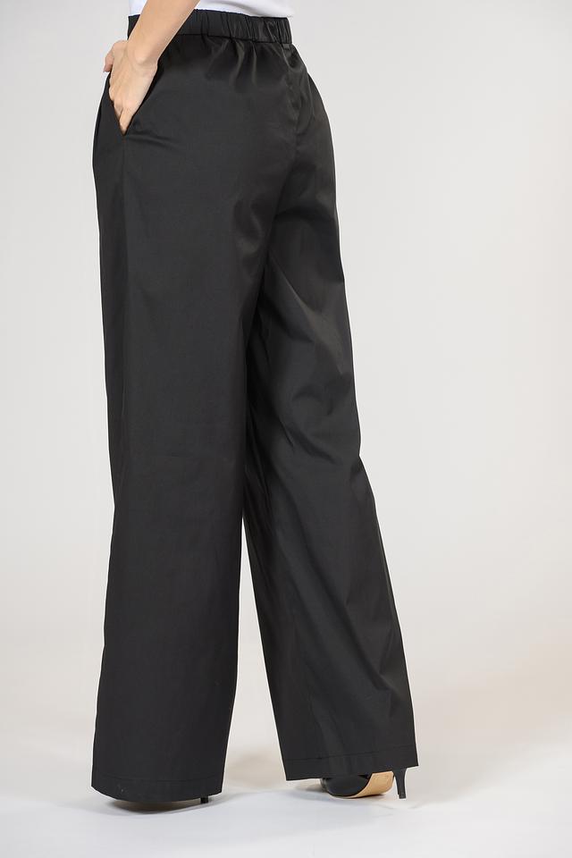 Чёрные брюки палаццо от i Blues из хлопка с добавлением полиамида и эластана. Модель с завышенной талией и широкими штанинами, обеспечивающими комфорт и свободу движений. Состав: хлопок 70%, полиамид 25%, эластан 5%