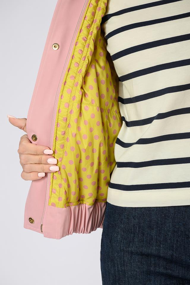 Особенностью данной модели является яркая подкладка с принтом в горошек, которая добавляет образу оригинальности и игривости. Состав верха – 88% полиэстер и 12% хлопок, а подкладка выполнена из 100% полиэстера.