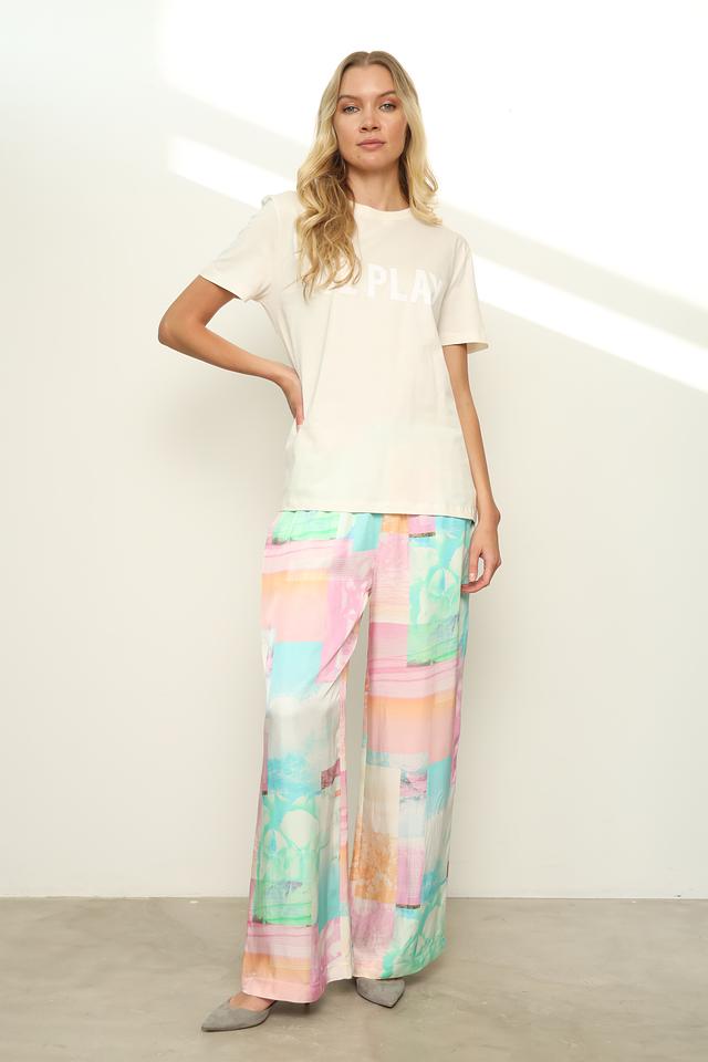 На передней части футболки размещена надпись "PLAY", выполненная в белом цвете, что добавляет ей современный и динамичный вид. Свободный крой футболки обеспечивает свободу движений и позволяет создать расслабленный образ.