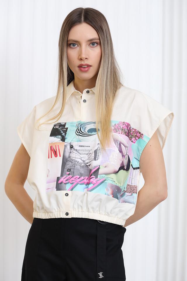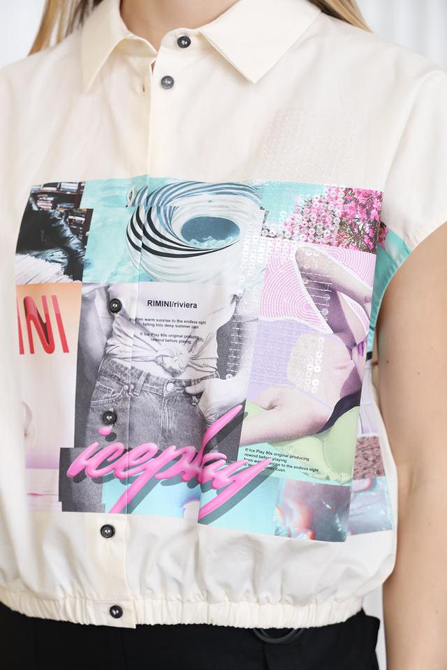 Бежевая блуза Ice Play с ярким принтом и укороченным кроем станет стильным дополнением к вашему гардеробу. Модель выполнена из 100% хлопка, что обеспечивает комфорт в носке. Состав: хлопок 100%