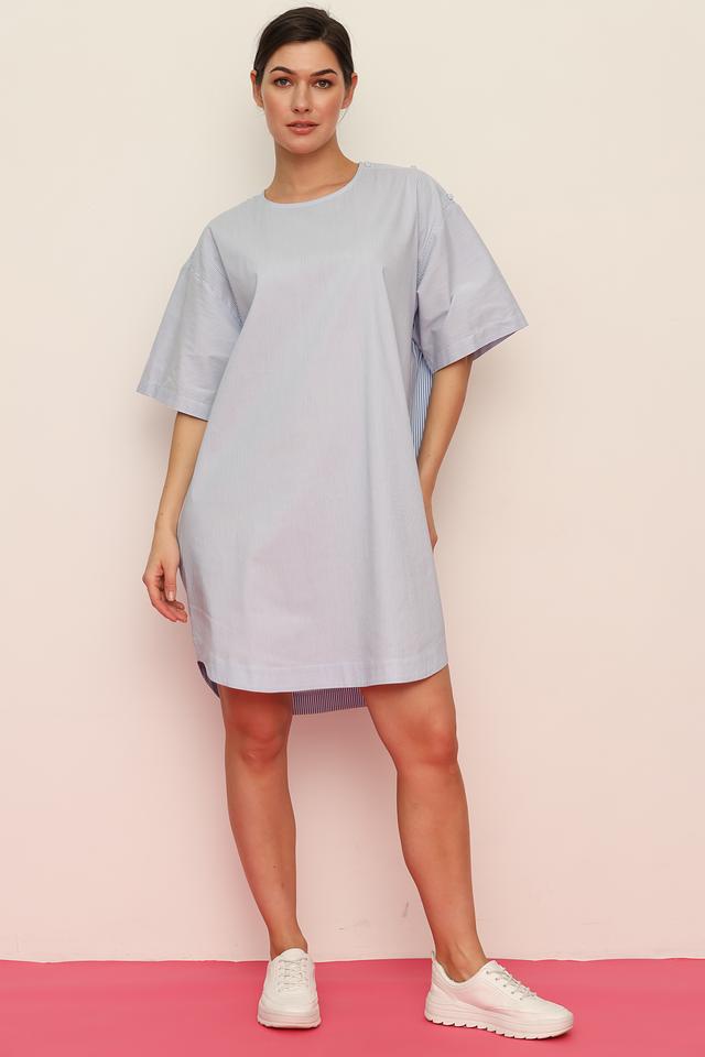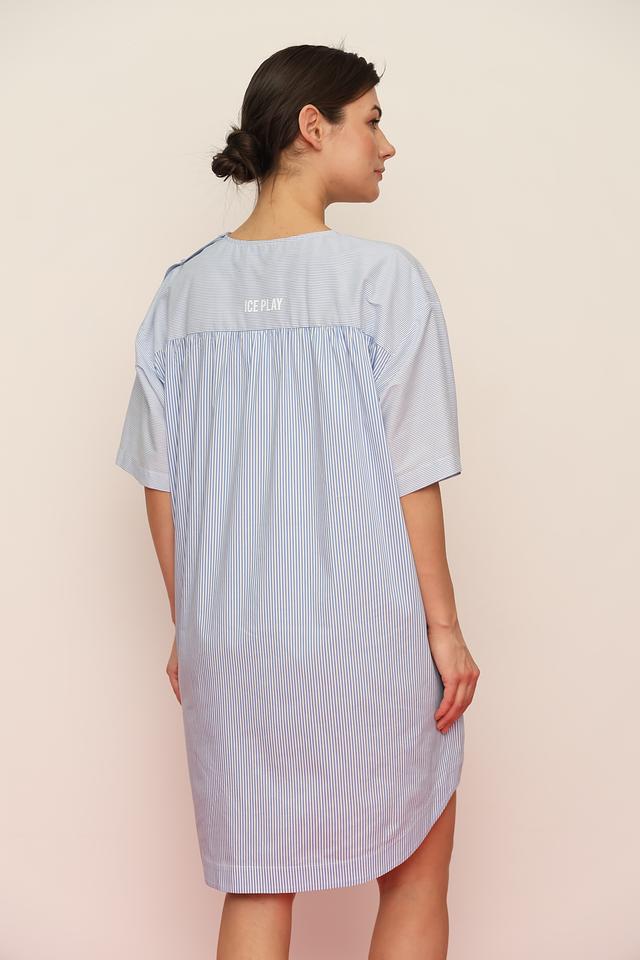Платье Ice Play голубого цвета в полоску – это стильное и комфортное решение для повседневного образа. Свободный крой и короткие рукава обеспечивают удобство, а полоска добавляет свежести и динамики. Состав: хлопок 73%, полиэстер 24%, эластан 3%