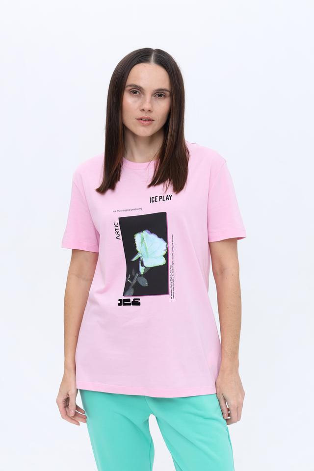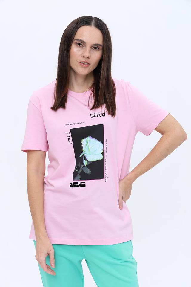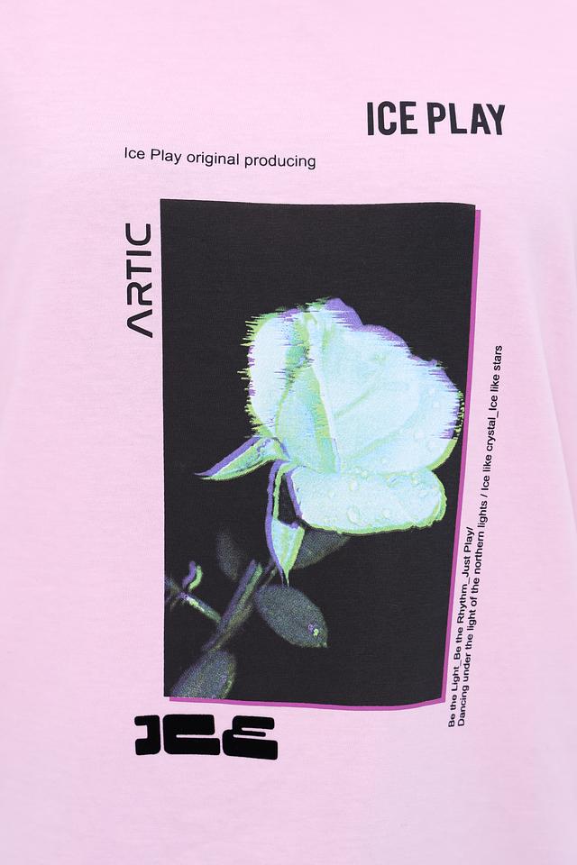 Женская футболка Ice Play нежно-розового цвета с ярким цветочным принтом. Модель выполнена из 100% хлопка, обеспечивая комфорт и воздухопроницаемость. Стильный и удобный вариант для повседневного образа. Состав: хлопок 100%