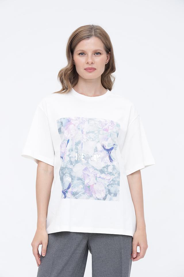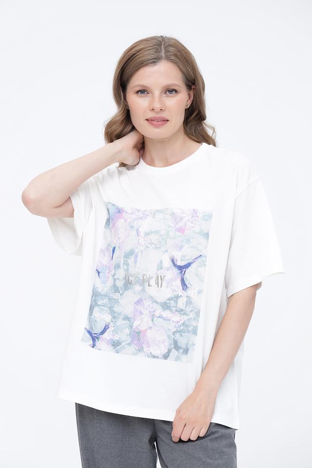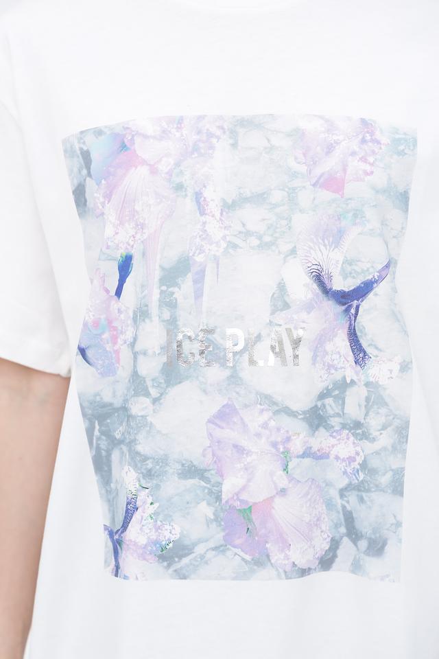Белая футболка Ice Play с ярким абстрактным принтом – стильный выбор для повседневного образа. Модель свободного кроя из 100% хлопка обеспечит комфорт в течение всего дня. Состав: хлопок 100%