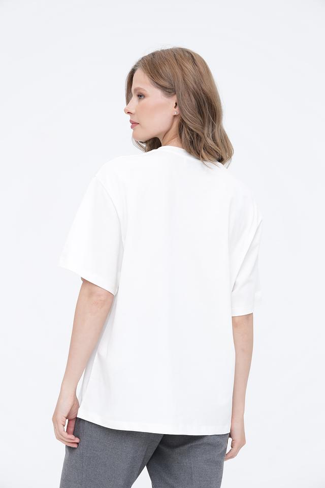 Модель имеет свободный крой, который обеспечивает свободу движений и комфорт при носке. Короткие рукава и классический круглый вырез делают эту футболку универсальной и подходящей для различных стилей.