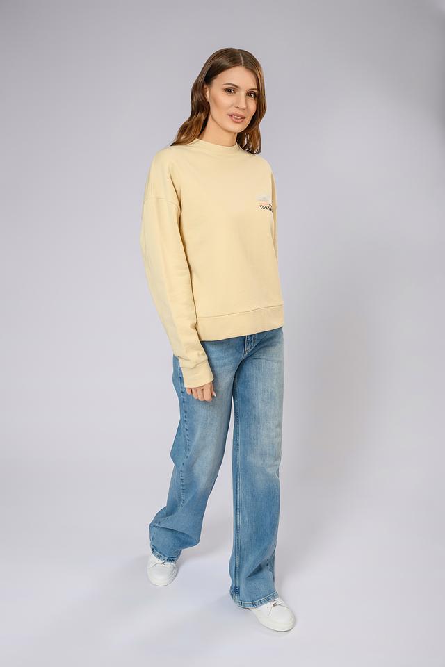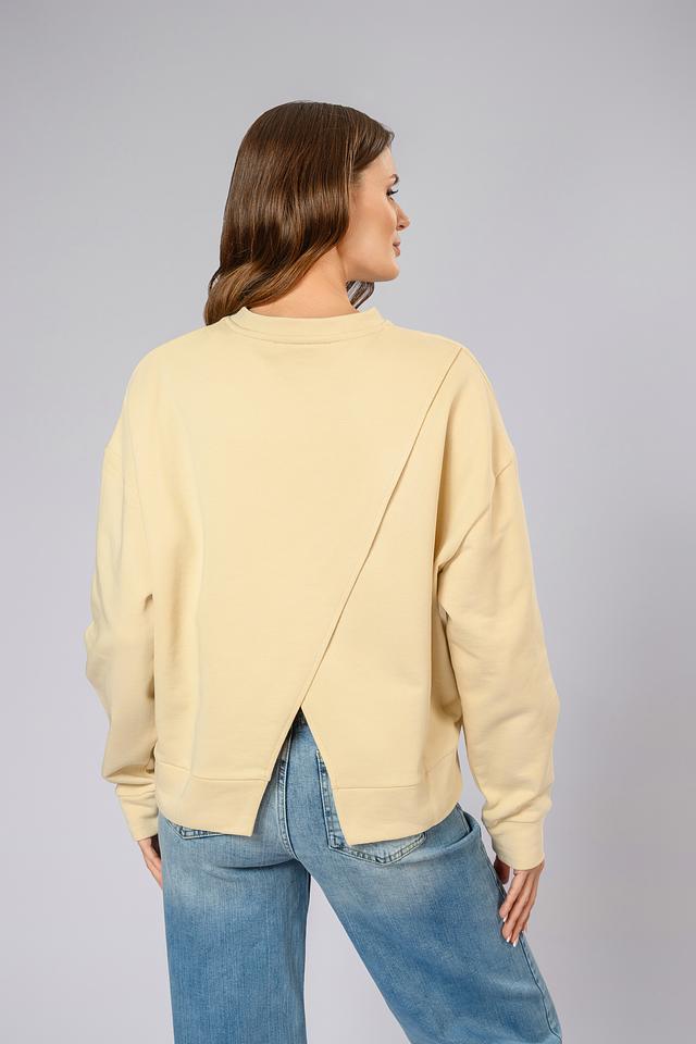 Женский джемпер Ice Play светло-бежевого цвета с оригинальным принтом и вырезом на спине. Изготовлен из мягкого и приятного к телу хлопка, обеспечивающего комфорт в повседневной носке. Состав: хлопок 100%