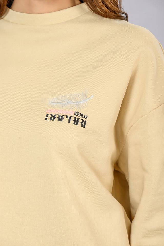Модель имеет свободный крой, который обеспечивает комфорт и свободу движений. На передней части джемпера расположен оригинальный принт с логотипом бренда и надписью "SAFARI", добавляющий изделию индивидуальности.