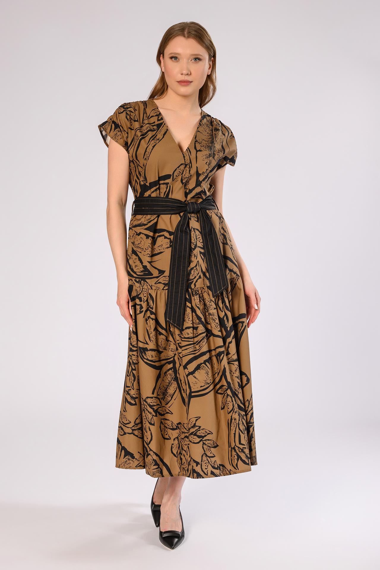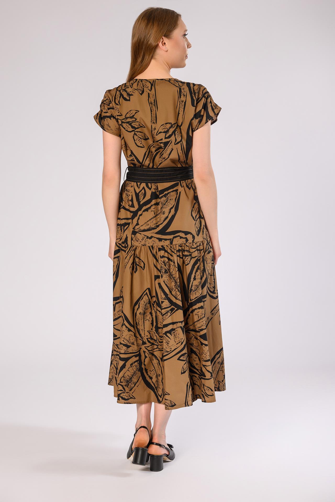 Платье Icona миди цвета какао с поясом и принтом