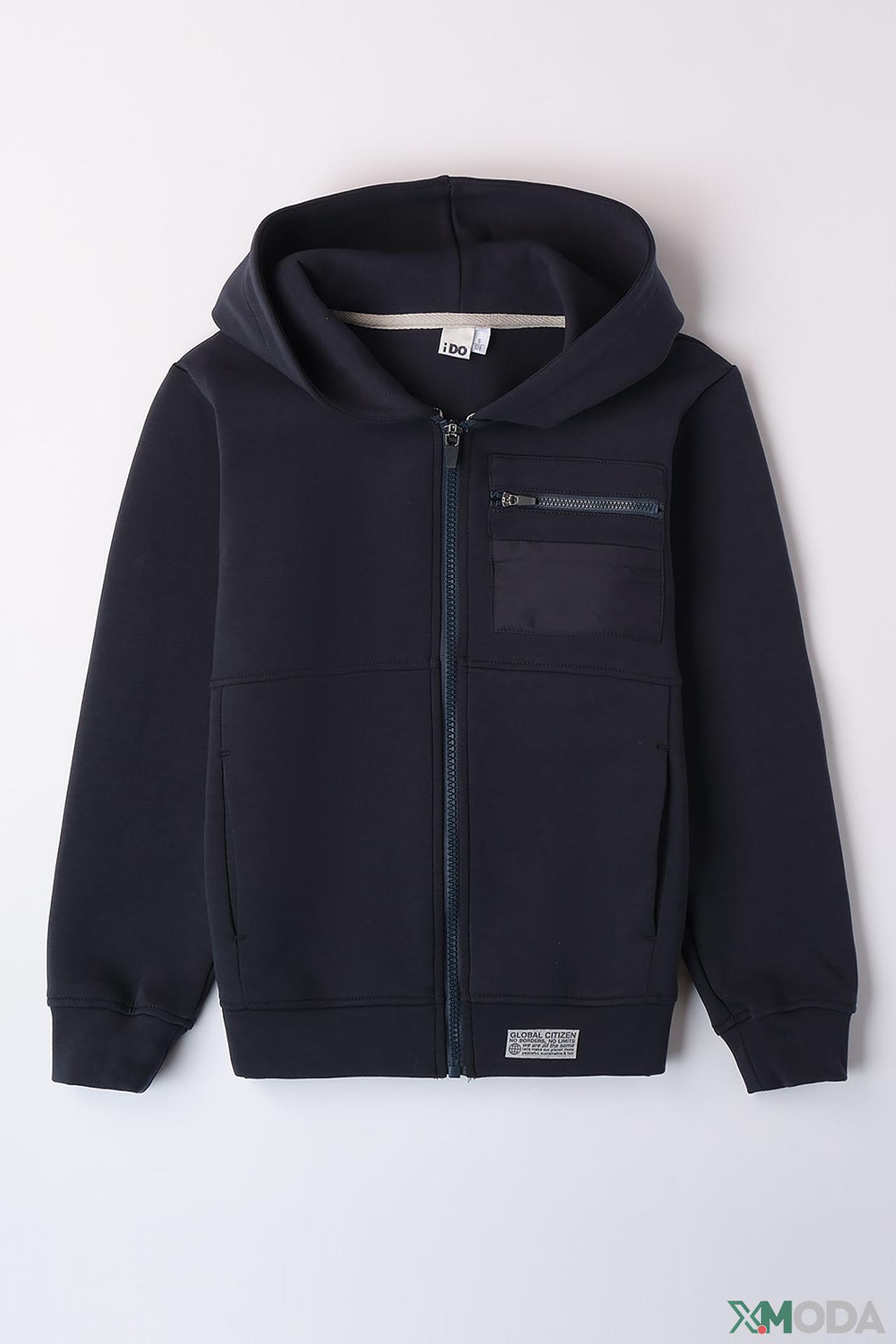 Тёмно-синий джемпер на молнии от Ido – идеальное решение для активных детей. Изготовлен из мягкой и приятной на ощупь ткани, состоящей из 80% хлопка, 14% полиэстера и 6% эластана, он обеспечит комфорт и свободу движений в любых приключениях. Джемпер оснащён удобным капюшоном, застёжкой-молнией и карманом на груди, что делает его не только стильным, но и практичным.